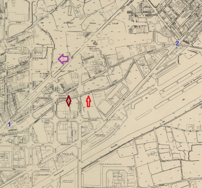 Había más accidentes. En 1926 una locomotora de los ferrocarriles del norte descarriló, cargándose, disculpen el lenguaje, a Marcelino Mora. En 1930 la niña Fuensanta Campillo fue atropellada en Trinxant con Bofarull, precisamente el trecho de calle desaparecido con la ampliación del ancho de la Meridiana durante los años cincuenta, segunda en este sentido, pues en 1946 se ensanchó el tramo junto a Felipe II, en boga ante la inminencia de la construcción del barrio del Congreso Eucarístico algo más arriba, donde antes sólo hubo campos y masías.