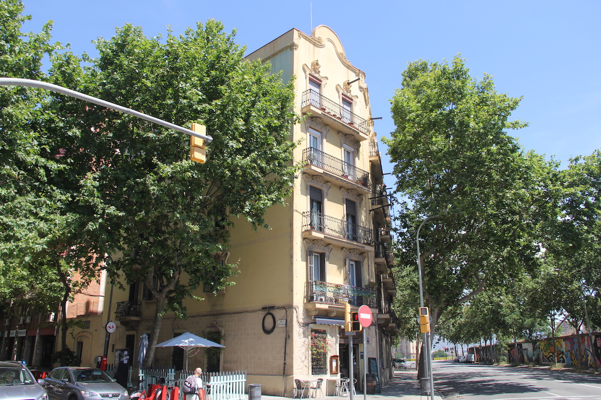 Su aportación a la edilicia del Clot pasa desapercibida ante mi estupor, sobre todo por sobresalir en su ángulo, complemento a la torre, antaño custodiada a sus espaldas por las barracas de la Perona, uno de los últimos núcleos de estas características en desaparecer, como pueden imaginar a las puertas de los Juegos Olímpicos, cuando a Pasqual Maragall le entraron las prisas por inmortalizarse muy enérgico en el proceso de derribar ese trozo de antaño, clausura de una Barcelona sólo homenajeada con placas más bien escondidas y alguna exposición con paneles para no gastar mucho dinero e ir acorde con la modestia de esas personas, muchas de ellas inmigrantes, instaladas en lo más mísero para sobrevivir, en algunos casos con bastante éxito, en la jungla urbana.