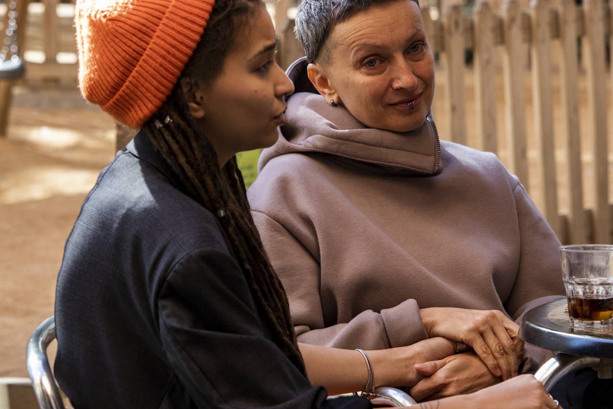Yuma proviene de una familia muy numerosa del sur de Rusia con la que ya no tiene relación porque sus padres y el resto de parientes no aceptaron que fuera lesbiana. Su lucha se remonta a la adolescencia y la ha trasladado a sus hijas, Alina y Mila, que ya saben qué es huir del país para proteger su vida. Una de sus citas culturales de referencia es el festival internacional de cine “bok o bok” (lado a lado), que tiene lugar en San Petersburgo durante el otoño y que trata sobre temas como la homosexualidad, la bisexualidad y las personas transgénero. “Nosotras somos voluntarias cada año y formamos parte de un gran equipo. El festival quiere cambiar el mundo y la cultura a través de películas, hay un clima muy abierto, no solo de personas LGTBIQ+. Como somos muy luchadoras, hemos recibido muchos ataques, de diferentes personas y de la policía, pero también tenemos muy buenas relaciones y muchos amigos”, explica la hija pequeña, Mila, en inglés, mientras va traduciendo la entrevista al ruso a su madre.