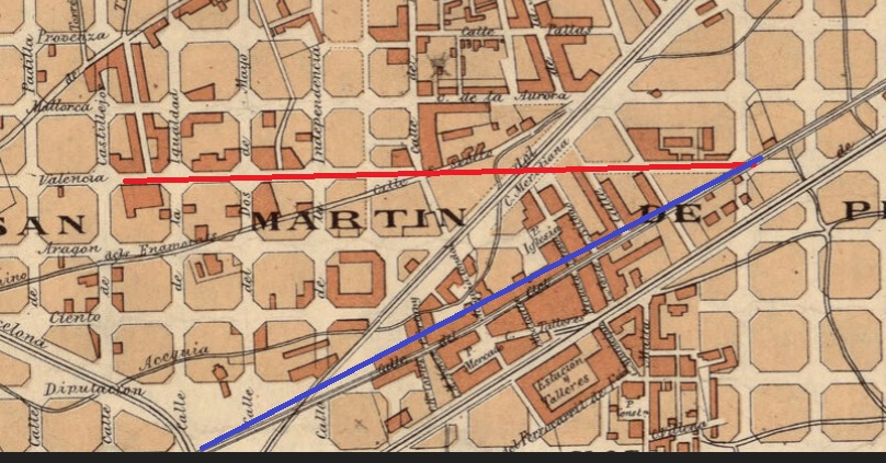 Avui em trobo, ja ho vaig advertir, a una cruïlla molt arquetípica, fruit de l’estratificació, més aviat la cronologia, de les urbanitzacions. Clot, València, Navas. La primera es coneix als documents de principi de segle encara com a Carretera de Ribes, la segona ens duria a l’imperialisme de l’Eixample, si bé ja figura inserida a la zona cap a 1890, tallada a altres punts; la tercera ensuma a anys 30, sobretot en aquests alentorns, on gairebé invisibles per l’arbrada, es concentren molts blocs racionalistes per a obrers, fruit del benefici de la santa família Vedruna, una secundària de luxe d’aquestes darreres setmanes.