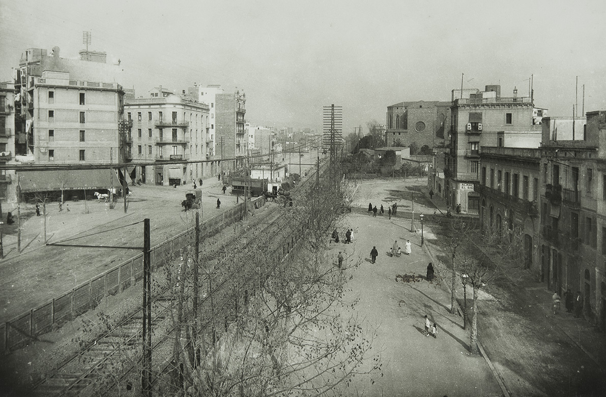 ¡Pobre Filomena! Tenía sesenta y seis años. Vivía cerca. Quizá volvía a su casa, sita en el 23 de la riera de Bogatell, hoy en día Rogent. Un tren la arroyó en un lugar indeterminado de la Meridiana, entre esta calle y Almenara Alta, donde ahora mismo estoy indeciso, con el lateral de la iglesia flanqueándome y unos edificios de distintas épocas, sobre todo de c. 1900 y algunos de 1936, me han llamado siempre la atención, por lo variopinto de sus fachadas y porque, en el cruce de la Meridiana, se ve como el inmueble de la esquina se construyó a un nivel más bajo, algo lógico, fruto de la gran reforma establecida durante el primer Franquismo y cuajada a lo largo de los años sesenta.