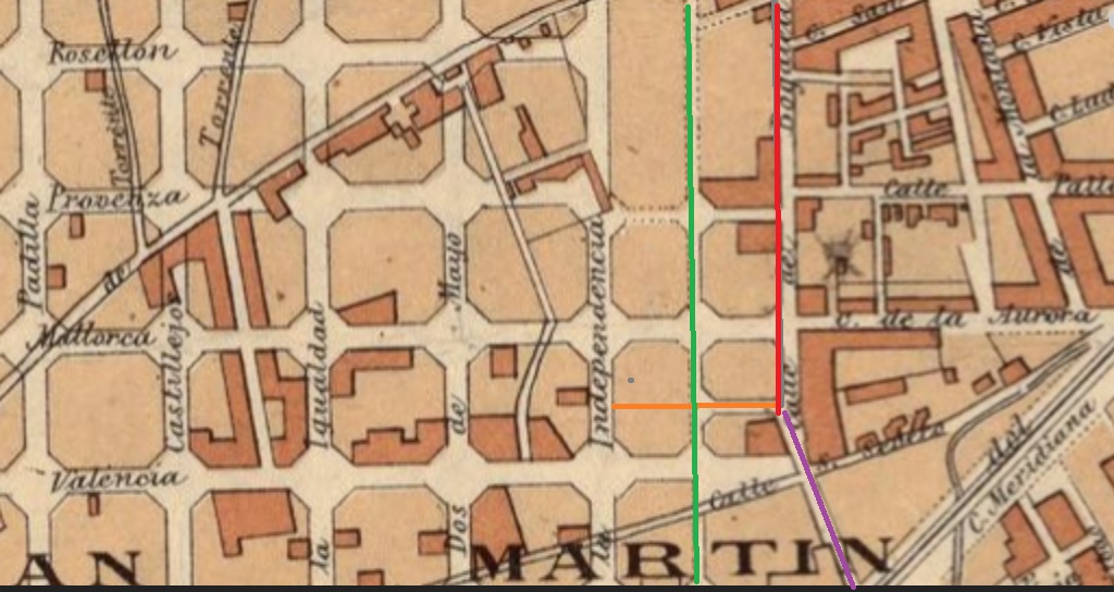 Paseo casi cada día por el Camp de l’Arpa, y poco después de la confluencia de Bassols con Camp de l’Arpa siempre me ha intrigado un hueco entre dos edificios, en mis elucubraciones la prueba de como el torrent de Bogatell circulaba por ese punto, algo confirmado en un mapa de 1891, donde puede verificarse el curso del mismo hasta proseguir por la Sèquia Comtal.