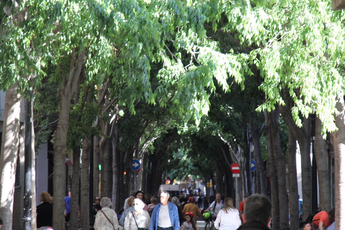 Si se pacificara el Camp de l’Arpa el embrollo iría para su comunidad. El plan es ambicioso y pretende liberar Navas, Meridiana, Independència, Freser e Industria, con el plus de dos ejes verdes en Mallorca y Muntanya, este último motivo de desvelo para mi persona al imaginar esta vía, casi siempre tranquila, como una reproducción de Rogent con la intención de fomentar el alud de bares y una economía similar a la visible en el Clot, donde los aledaños del mercado han quedado preciosos, pero con el riesgo de estar de moda, como si así se cumpliera el anhelo olímpico de reformar un inmenso territorio, del Poblenou a Glorias, ampliándolo desde la inocencia de un bienestar, cierto cuando lo transitamos, más dudoso si nos adentráramos en las viviendas de sus ciudadanos y la cuantía de alquileres o hipotecas.