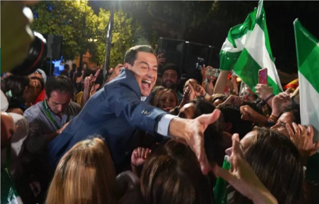 «Gràcies, Andalusia», diu la pancarta que el PP ha penjat aquesta nit electoral del 19-J al balcó de la seva seu. I és el primer que ha dit Juanma Moreno, avui sense corbata: «Gràcies, Andalusia […]. Només poden els que creuen que poden». «Un somni fet realitat», amb la música de fons de Manuel Carrasco, que fa uns dies va arrasar també al concert de Sevilla. «Em sento orgullós de ser andalús», ha afegit, com una resposta en el temps a aquell eslògan d’Iñaki Gabilondo a la SER: «Andalusia és una terra gran, bella, vella i sàvia. Senti’s orgullós de ser andalús». És, quaranta anys després, amb altres actors i amb altres polítiques, la nova crònica d’un somni.