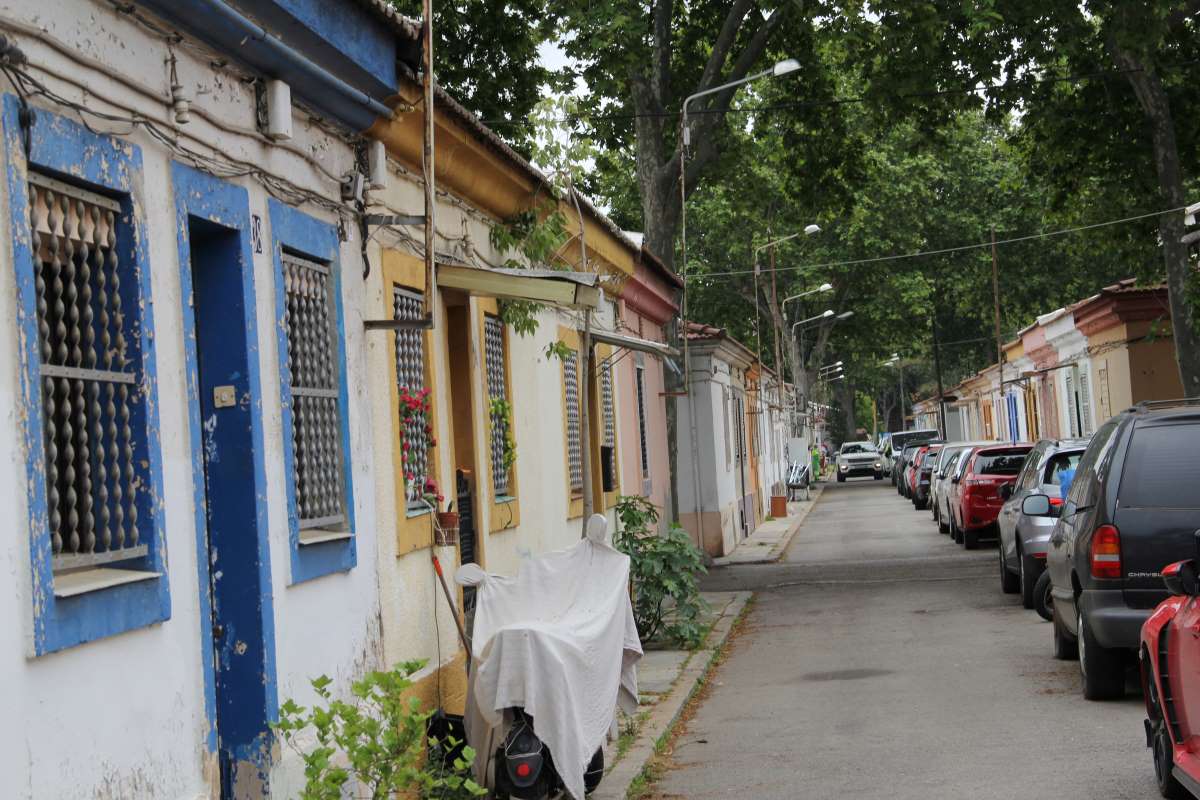 La otra cara de la moneda, sólo hasta cierto punto, correspondería a Can Peguera, el único polígono de casas baratas casi íntegro, no como el del Bon Pastor, hace pocos meses en la contradicción de aunar su belleza de blanco policromado con la inminencia de ruina.