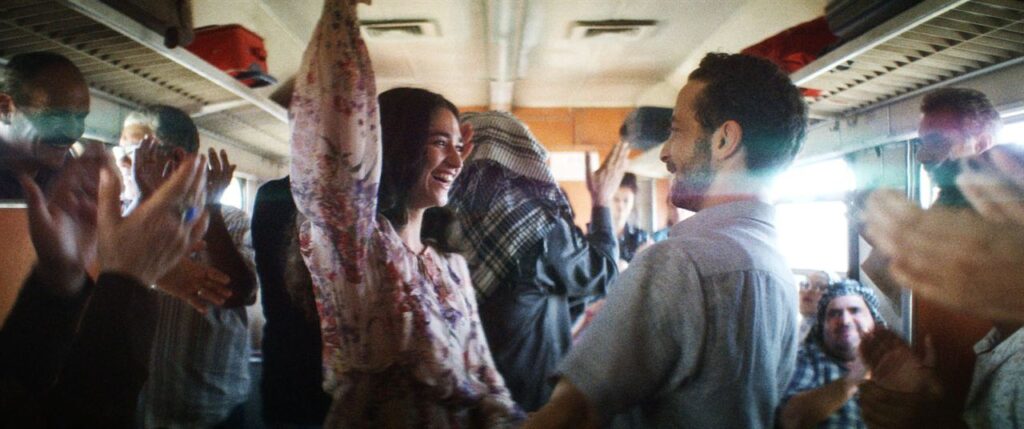 - El tercer aspecto nos lleva a la libertad real, inexistente en un país autoritario como Siria. El protagonista se manifiesta en voz alta a favor de la libertad en un concurrido vagón de tren, encontrando rápidamente la complicidad del resto de viajeros, tan cómplices que le graban en vídeo y lo hacen viral, convirtiendo al contento enamorado en una persona contraria al régimen provocado por su incontinencia verbal y crítica. De enamorado a revolucionario, de famoso viral a enemigo de la patria.