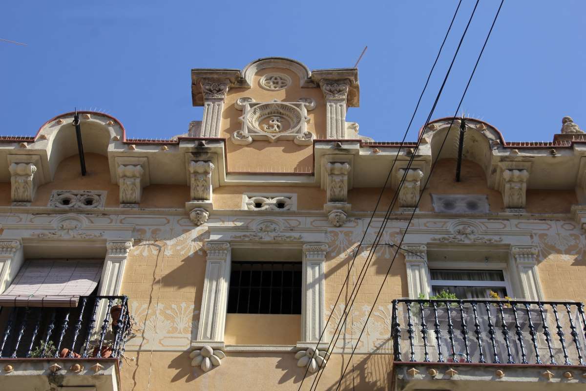 Escribirlo ahora no es emocionante, pero el buen lector de esta serie de las Barcelonas habrá intuido como durante semanas me han obsesionado tres casas sin casi documentación de esta humilde y medio anónima calle. La Grabulosa oscila entre Graner y Sanllehí Molist, mientras la hermosísima 78 sin duda pertenece a este último. La tercera en discordia sí, es de José Olalde, pero no podía deducirlo pese a leer a las claras un J.O. en su cumbre, básicamente por no asociar estas letras con sus gemelas, de otro tamaño y grafía, en el 55 de Trinxant.