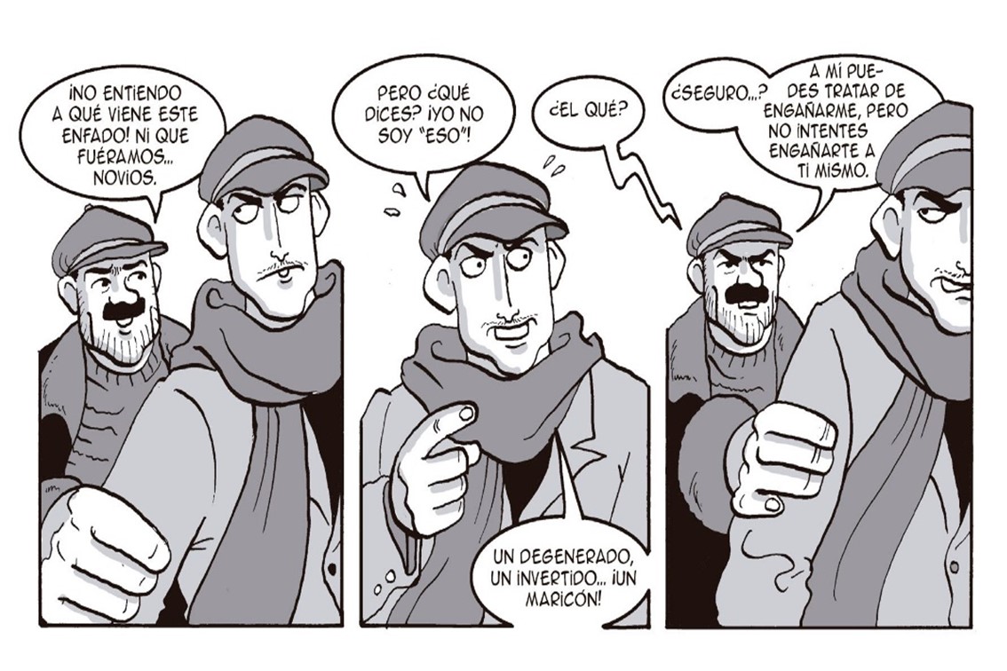 L’escenari que ens mostra Martín és un dels pilars de la investigació sociològica: fins a quin punt la interacció social influeix en el nostre comportament i condiciona les nostres decisions? fins a quin punt les estructures socials limiten les nostres llibertats? Una altra dada interessant és l’evolució en les creences i els valors amb el pas del temps, i un bon exemple és Manolín, suposadament d’esquerres. A les primeres pàgines de la novel·la gràfica, el cunyat anarcosindicalista recomana a Tomás que llenci el llibre de poemes de García Lorca, «Aquest que diuen que és marieta… Els invertits són presa d’un vici burgès!». El món al revés, aparentment, també passa una cosa semblant amb la policia que suposadament ens deu protegir, i no són, ni de bon tros, el que aparenten.
