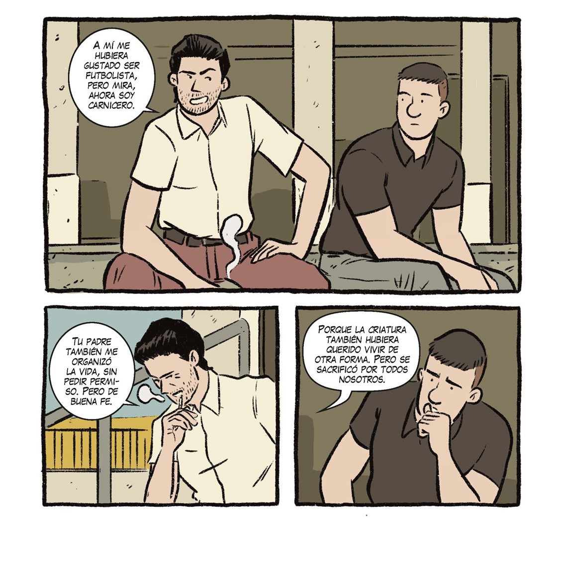 En una de las viñetas, uno de los sobrinos le reconoce a su primo Juan que él mismo es el resultado de las injerencias de su moribundo padre, producto de las circunstancias del momento: «Tu padre también me organizó la vida, sin pedir permiso. Pero de buena fe. Porque la criatura también hubiera querido vivir de otra forma. Pero se sacrificó por todos nosotros». En su caso, la profesión escogida fue la de carnicero, una profesión digna y noble, con una formación de una duración más corta que otras opciones, que le permitía una incorporación casi inmediata al mercado laboral, una vez conseguidas las competencias pertinentes.