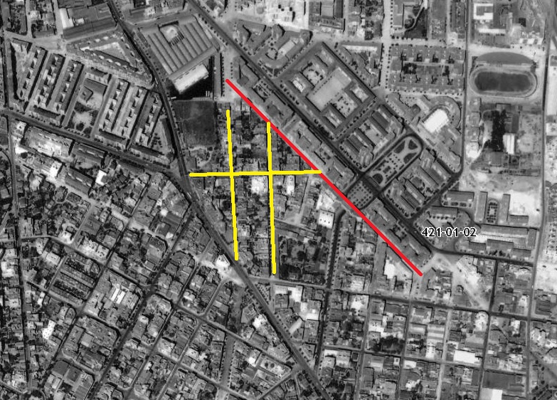 Alexandre Galí Ortofoto de 1965. En rojo Alexandre Galí, L’H amarilla es el barrio de Salvador Riera| Jordi Corominas