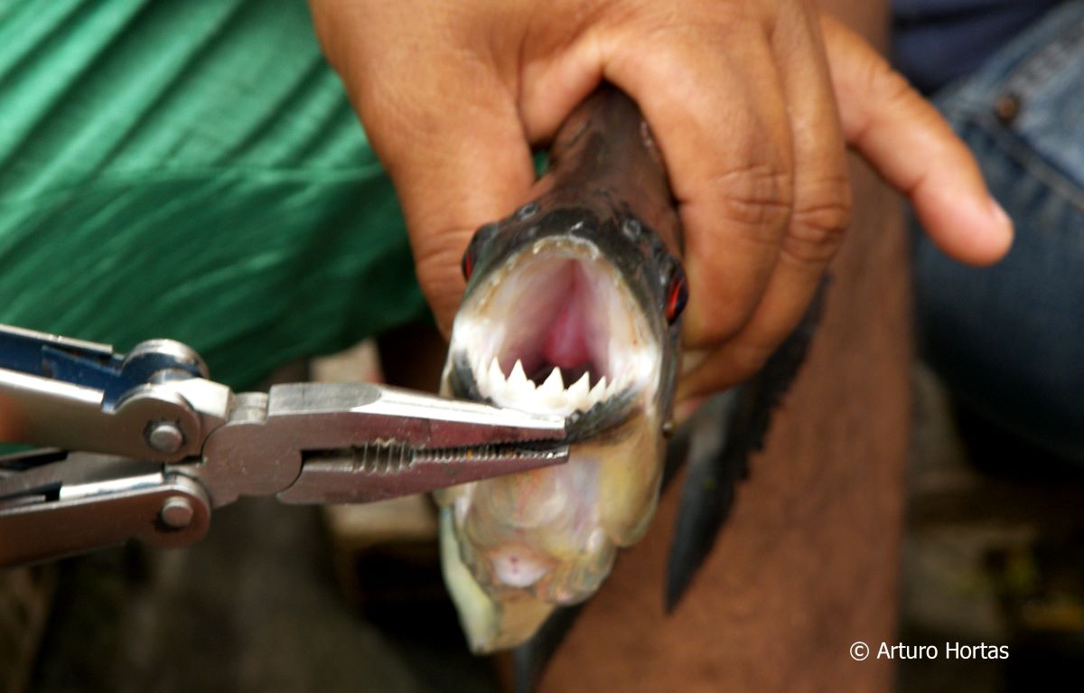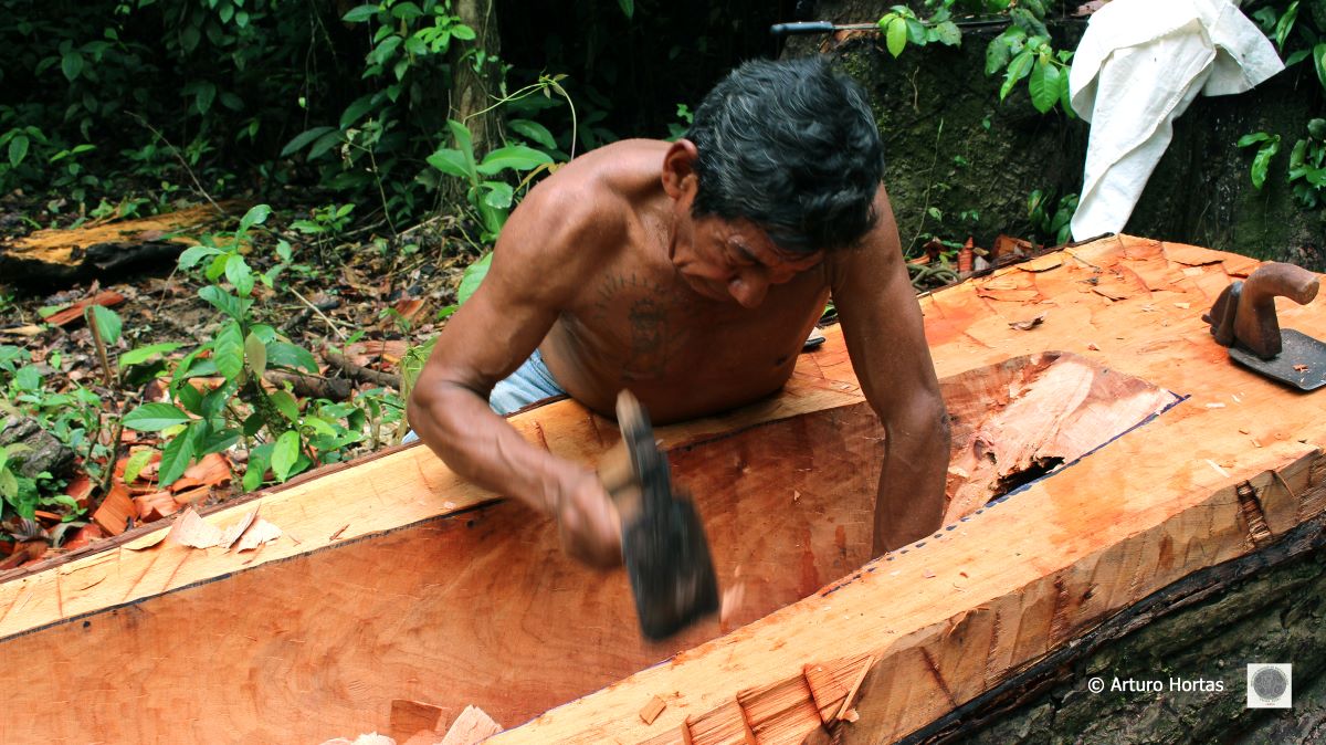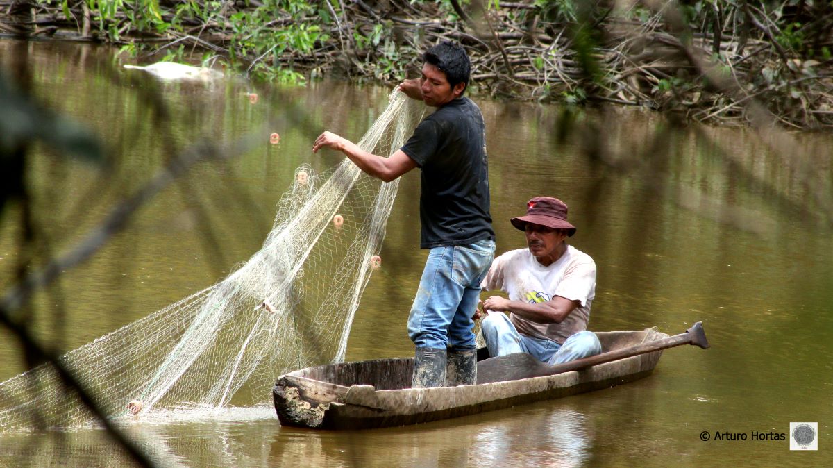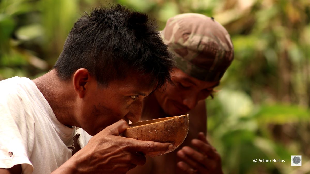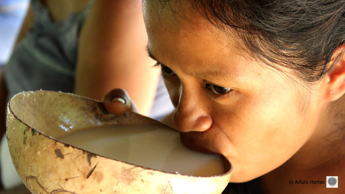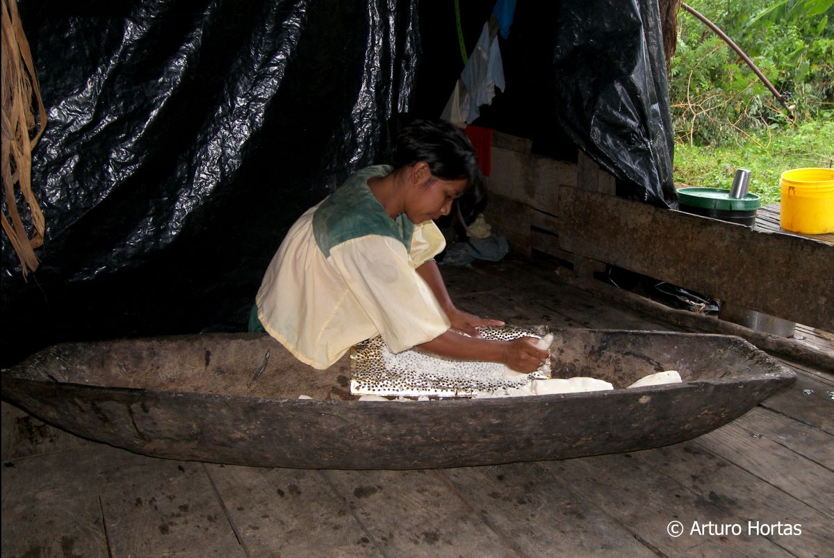Amanece, tomamos la canoa y visitamos una comunidad de la Nacionalidad Siona. Durante el trayecto observamos huellas recientes de jaguar, monos chorongos, guantas, monos barizos, loras, guacamayos, la pava hedionda (hoatzin), delfines de río, manatíes, tapires, tortugas, pirañas, huellas de manadas de huanganas y árboles de todas las especies, muchos de ellos con propiedades medicinales.