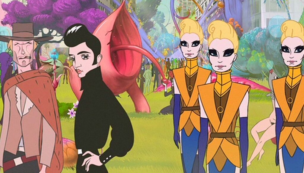 Para esta segunda parte, el cineasta se inspira libremente en uno de los grandes clásicos de la literatura de ciencia ficción, en concreto en el libro Congreso de Futurología (Kongres futurologiczny, 1971), de Stanislaw Lem (1921-2006), publicado en castellano por Alianza Editorial, con traducción de Melitón Bustamante (una labor destacada en una obra plagada de neologismos). Ese mundo virtual donde se celebra el congreso y donde tiene la reunión la actriz no tiene nada que ver con el que pudimos ver en la película Matrix (1999), por ejemplo, sino que es producto de las sustancias alucinógenas que contiene el líquido que le suministran justo antes de llegar, como sucedía en la historia original de Lem (aunque en ese caso, el protagonista se contaminaba de forma involuntaria).