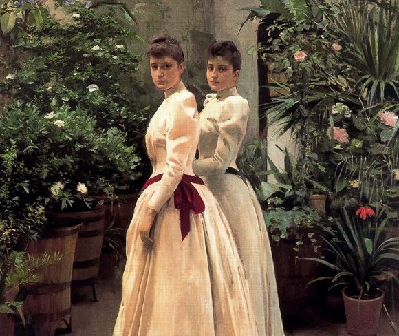 Detalle del cuadro “Les senyoretes N.N.”, de Ramon Casas. La chica que mira de más cerca es María Ángeles Puig España, prima del pintor.
