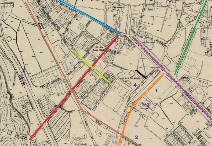 Aquí, un poco sin querer, he trazado otra línea a considerar. Vilapicina, junto a la torre Llobeta, se enmarca en Nou Barris sin tener nada qué ver con la historia del distrito, como comentamos con La Jota, encuadrado en todos y ningún sitio. La calle Pi i Molist tenía como meta el manicomio, ingreso al incipiente mundillo de los futuros Nou Barris.