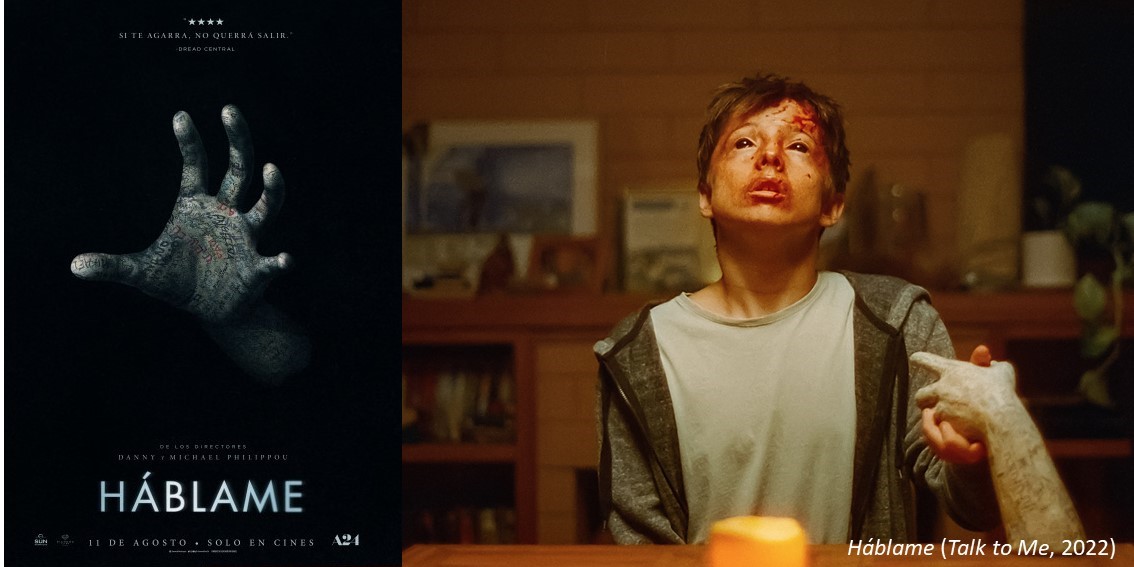 En enero de 2024, llega a las plataformas digitales la película de terror australiana Háblame (Talk to Me, 2022), que tuvo su estreno internacional en las salas de cine en el verano del año pasado, convirtiéndose en todo un fenómeno, impulsando la carrera de sus debutantes directores. Los gemelos Danny y Michael Philippou sorprenden con una historia de posesión protagonizada por adolescentes, sin grandes efectos especiales pero extremadamente contundente en la puesta en escena, con una historia terrorífica y una interpretación destacada de sus jóvenes actores.