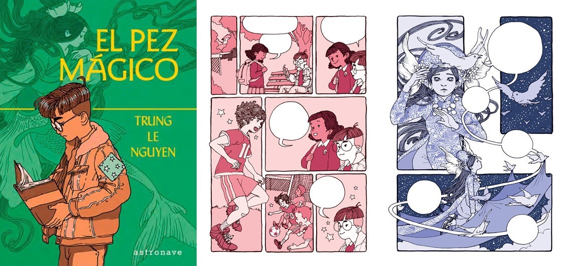 En un discurso similar, cabe destacar la novela gráfica El pez mágico (The magic fish, 2020), de Trung Le Nguyen, publicado en octubre de 2023 por el sello Astronave de Norma Editorial, con traducción al castellano de Juan Naranjo. El mismo autor en su página web se define como vietnamita-estadounidense (nació en un campo de refugiados). The magic fish fue su primera novela gráfica, nominada a un Premio Eisner y numerosos reconocimientos, un éxito que le ha llevado a publicar a posteriori con editoriales tan conocidas como DC Comics, Image Comics o Marvel, en historias de superhéroes donde la identidad de género es importante en la trama.