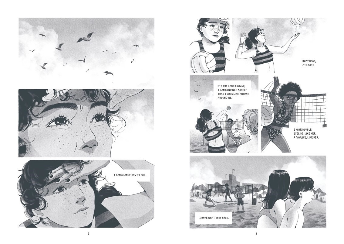 También resulta pedagógico comprender los efectos sobre la salud mental asociados a las situaciones singulares de los inmigrantes. Una ansiedad provocada por los conflictos familiares, la violencia explosiva de la madre exigente (decepcionada con un notable, mientras trabajan para que no les falta de nada a sus hijos), la competitividad y presión en el instituto, y los conflictos cotidianos con las amigas más cercanas que, a su vez, deben de gestionar sus propios conflictos personales. El estilo escogido en el arte, con tonalidades de grises y gran expresividad corporal, transmiten perfectamente la desesperación creciente y la soledad de la adolescente, agravado por la presión social, aceptada por su madre y su familia en Corea, de realizarse una operación de cirugía estética: una blefaroplastia.