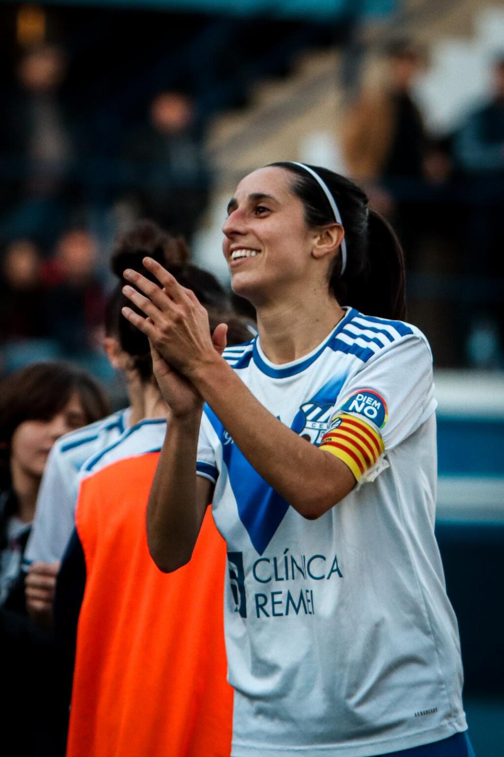 Siempre que hay algo en Gràcia nos invitan, nos tienen muy en cuenta y nosotras participamos plenamente en la vida del barrio. Es mi club, ¡llevo tantos años aquí! Me siento identificada con sus valores. Ya tengo 33 años y no me queda mucho fútbol en las botas, pero ahora mismo no iría a otro club; quiero al club y siento los valores que transmite. Para mí, esto es mucho más importante que cambiar de club por temas económicos. He tenido otras ofertas pero me ha tirado más el corazón que la cabeza, y creo que no solo a mí, sino también a otras personas. La afición —por cierto, muchísima gente viene a vernos— nos acompaña; viene mucha gente del barrio y me siento mucho del club.