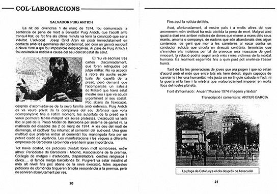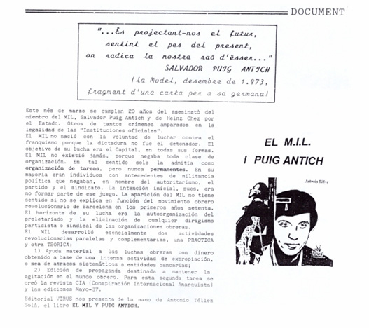 Acabamos el artículo con esta última publicación, cedida por Roser Vicente y de fecha desconocida, que nos narra las últimas horas de Salvador Puig Antich.