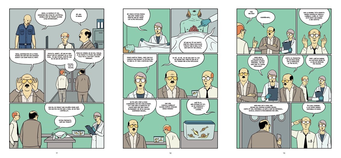 El guionista de la novel·la gràfica és David Pamies, doctor en biotecnologia per la Universitat Miguel Hernández d’Elx, actualment professor del departament de fisiologia de la Université de Lausanne, a Suïssa, on està fent el seu projecte de recerca en el desenvolupament de models del cervell humà per estudiar el mecanisme molecular de diferents malalties i aplicar aquests models 3D a l’àmbit de la toxicologia i al desenvolupament de fàrmacs, un mètode alternatiu a l’experimentació amb animals. Ja havia escrit algun guió curt, algun amb David Sánchez, amb qui ara s’estrena en una història llarga, traient partit a l’estil polit de Sánchez, amb uns personatges dotats d’una gran expressivitat corporal, a la qual se superposa un guió on el desenvolupament dels personatges i les converses són fonamentals, mostrant un perfil característic de perdedor dels dos agents protagonistes, en un context d’ansietat generalitzada, exposada per les surrealistes situacions mostrades.