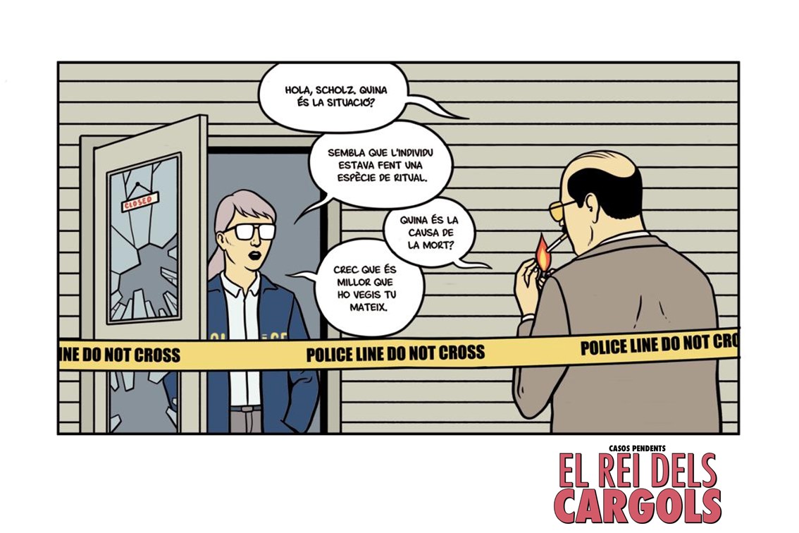 Una cosa així hauran pensat els autors de la novel·la gràfica El rei dels cargols (2024), amb guió de David Pàmies i dibuix de David Sánchez, que han situat la seva història a la ciutat de Amarillo, a Texas (Estats Units), que forma part del conegut com a Pla Estancat, un altiplà de gran extensió, una zona semidesèrtica i àrida amb una densitat de població molt baixa a causa de les condicions geogràfiques, ideal per situar la delirant història que ens proposen. Els protagonistes de la història són dos agents de policia, en Gros i en Cheto, que hauran d’investigar un doble homicidi succeït en una benzinera abandonada, aparentment relacionat amb un ritual satànic.