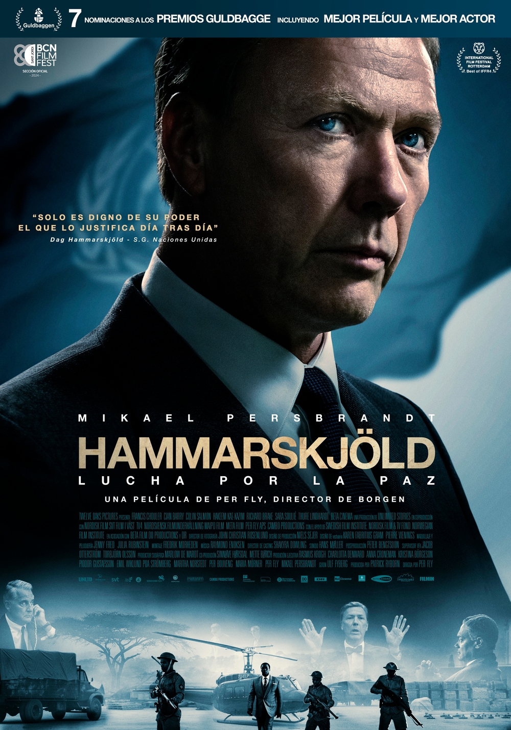 Hammarskjöld. Lucha por la paz (Hammarskjöld, 2023) està dirigida pel cineasta danès Per Fly, que signa el guió amb Ulf Ryberg, i està protagonitzada per l’actor suec Mikael Persbrandt, que dona al personatge el port necessari per mostrar l’autoritat i lideratge del polític, així com el tarannà per irradiar a la pantalla el coratge, la integritat i l’honestedat que van servir d’inspiració i de reconeixement mundial. La pel·lícula s’ha presentat al 8è Festival Internacional de Cinema de Barcelona-Sant Jordi (BCN FILM FEST) 2024 i ha comptat amb la presència de Mikael Persbrandt.