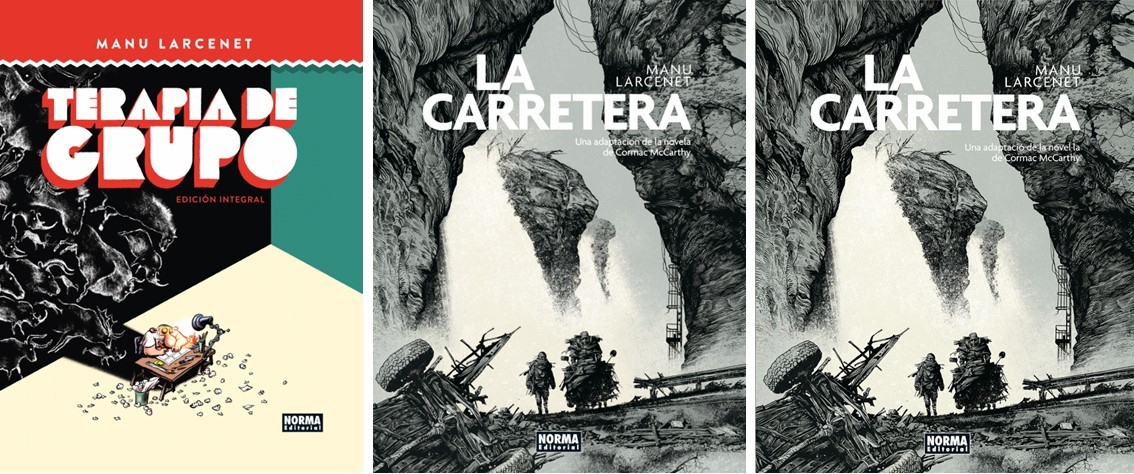 Norma Editorial, gairebé coincidint amb l’edició francesa, publica el còmic La carretera (La route, 2024), amb guió i dibuix de Manu Larcenet, adaptant la novel·la homònima de Cormac McCarthy, amb edició en castellà amb traducció d’Eva Reyes de Uña, i en català amb traducció de Pilar Garriga. Un mes després de la publicació al març, per part d’Éditions Dargaud, ja es venia en tretze idiomes diferents. No és la primera adaptació d’una novel·la en la seva prolífica producció artística, destaca especialment el còmic cómic El informe de Brodeck (Le rapport de Brodeck, 2015-2016), publicat també per Norma Editorial el 2017, on adaptava la novel·la homònima de Philippe Claudel, publicada el 2007 i guanyadora del prestigiós Premi Goncourt 2007, entre altres reconeixements.