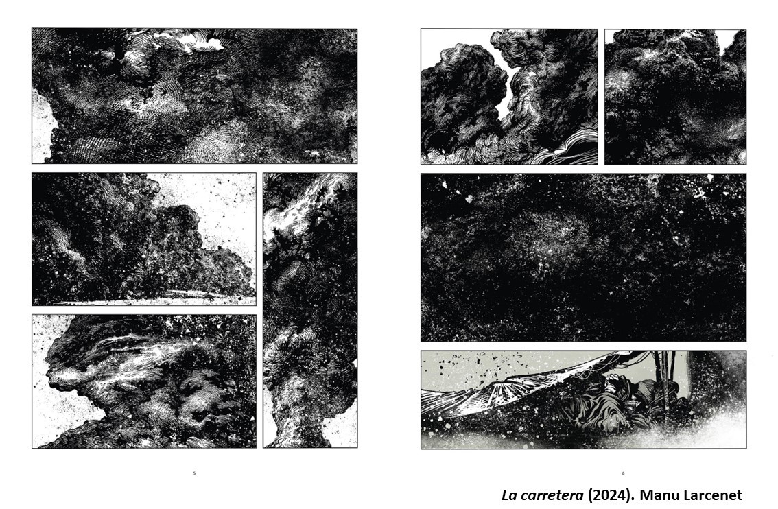 Norma Editorial, gairebé coincidint amb l’edició francesa, publica el còmic La carretera (La route, 2024), amb guió i dibuix de Manu Larcenet, adaptant la novel·la homònima de Cormac McCarthy, amb edició en castellà amb traducció d’Eva Reyes de Uña, i en català amb traducció de Pilar Garriga. Un mes després de la publicació al març, per part d’Éditions Dargaud, ja es venia en tretze idiomes diferents. No és la primera adaptació d’una novel·la en la seva prolífica producció artística, destaca especialment el còmic cómic El informe de Brodeck (Le rapport de Brodeck, 2015-2016), publicat també per Norma Editorial el 2017, on adaptava la novel·la homònima de Philippe Claudel, publicada el 2007 i guanyadora del prestigiós Premi Goncourt 2007, entre altres reconeixements.