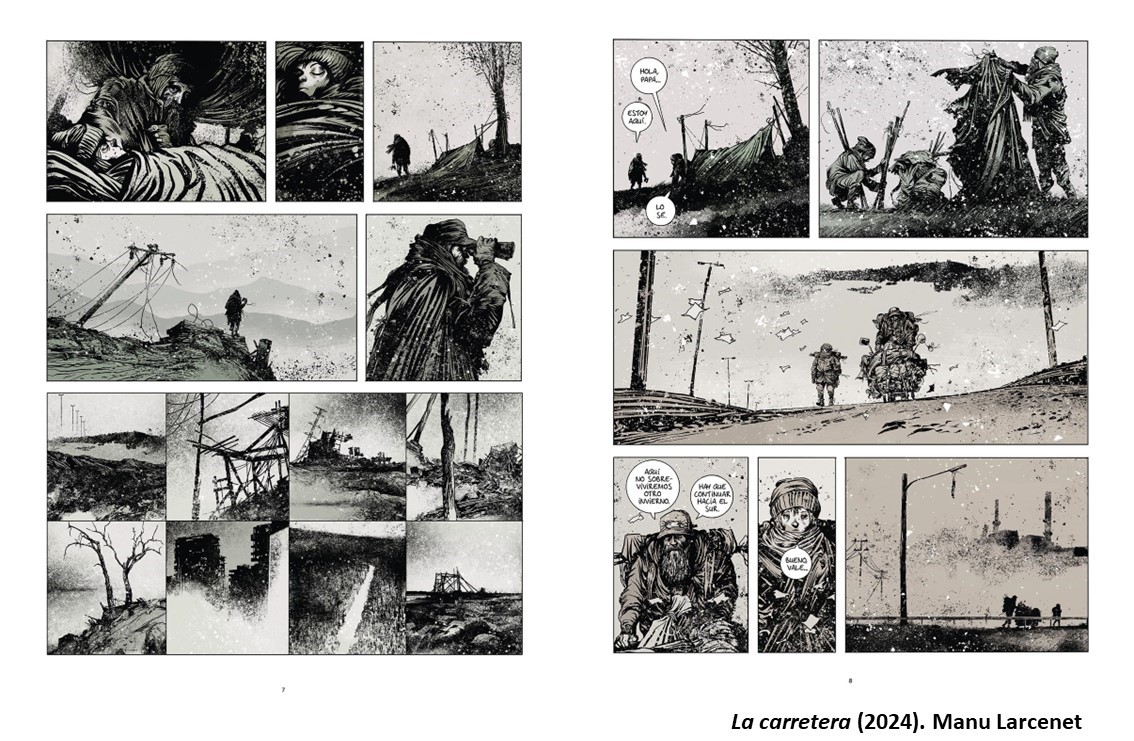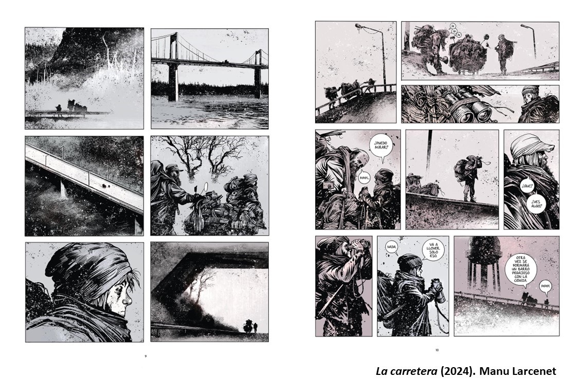 Un món binari, de bons i dolents, en un univers sòrdid, amb una estructura narrativa singular, allunyada de les que estem acostumats a la ficció, i el repte de traslladar la novel·la de McCarthy al còmic van ser clau perquè l’autor francès Manu Larcenet es decidís a adaptar-la en forma d’historieta. La decisió va ser crucial, ja que, en paraules del mateix autor, el va portar durant un any i mig directament a l’infern, amb una immersió intensa ja que explica que va treballar durant tots els dies de la setmana sense parar a descansar durant aquest temps. Sabent sempre que hi havia un lleuger esclat d’esperança al final de l’obra i que podia dibuixar petits brots de bellesa que sobresortien enmig de la desesperació i l’hecatombe que estaven vivint els protagonistes.