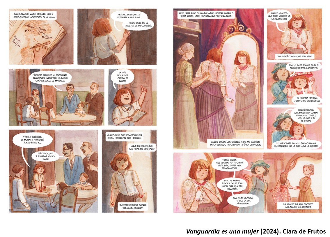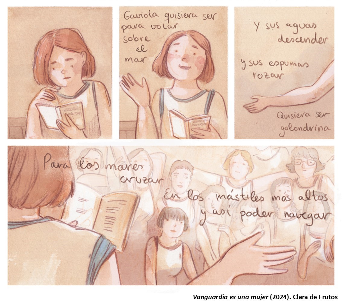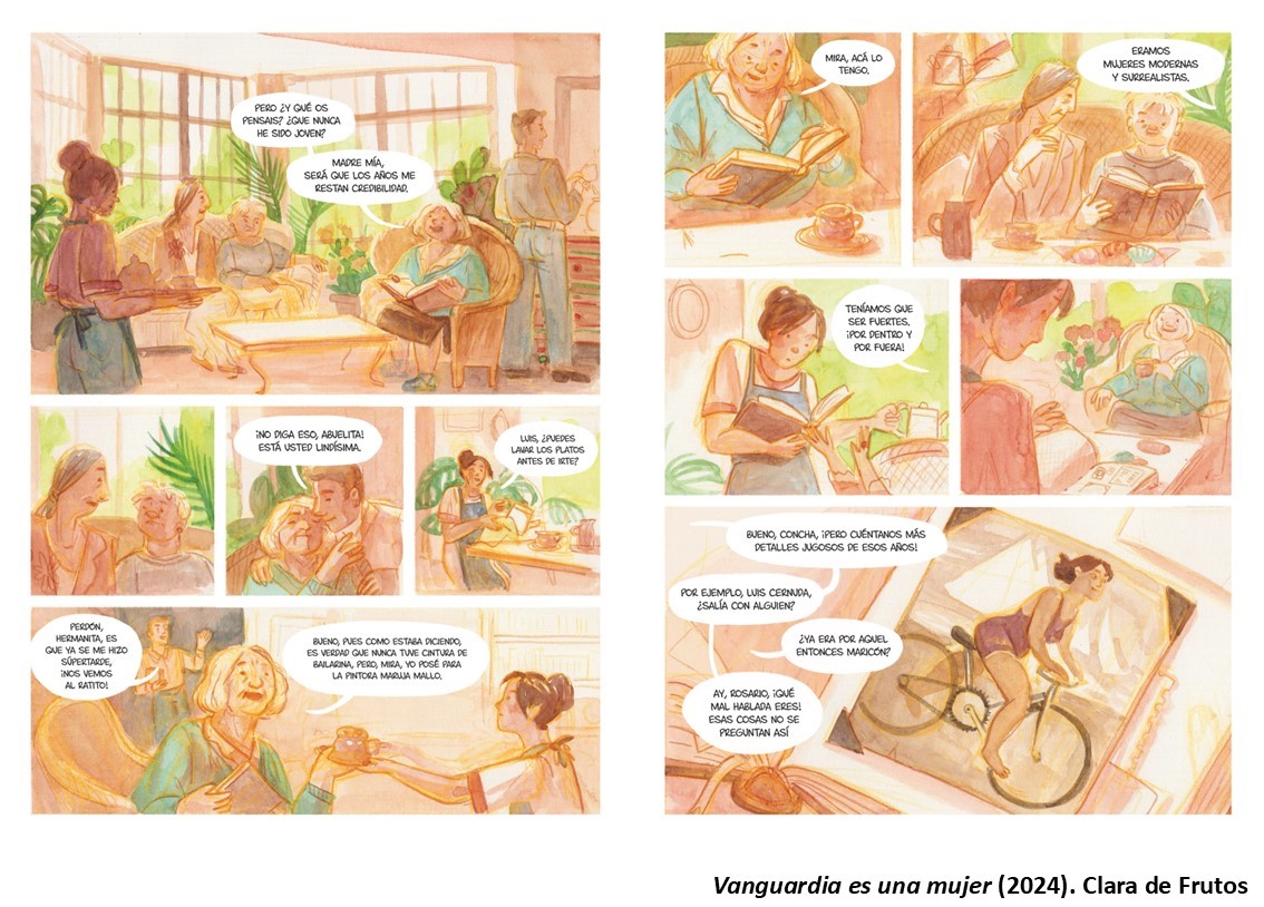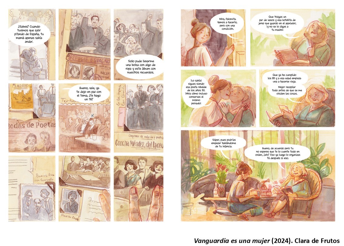 Totes aquestes vivències recopilades al llibre de memòries de la seva neta, ha servit d’inspiració per al còmic Vanguardia es una mujer (2024), amb guió i dibuix de Clara de Frutos, publicat per Norma Editorial, una brillant òpera primera d’una experimentada il·lustradora, que ha desenvolupat una intensa carrera en pel·lícules d’animació, especialment en el disseny conceptual i de fons per a diferents estudis cinematogràfics, on destaquen els seus treballs a Wolfwalkers (2020) i a El dragón de papá (My Father’s Dragon, 2022), entre d’altres. De Frutos va ser la guanyadora de la primera convocatòria de la Beca de Creación «El arte de volar», en què es van presentar prop de dues-centes sol·licituds. La beca és una iniciativa impulsada per la Fundació El arte de volar, Norma Editorial i el Grupo Edelvives, amb «l’objectiu és potenciar la creació en l’àmbit de la historieta, amb el suport a un projecte original i innovador, tant des del prisma gràfic com a nivell narratiu». El projecte guanyador rep un ajut directe de 4.000€ i un contracte d’edició amb Norma Editorial amb una bestreta de drets d’autor de 4.000€, i fins ara s’han realitzat dues convocatòries, la del 2021 i la del 2023.