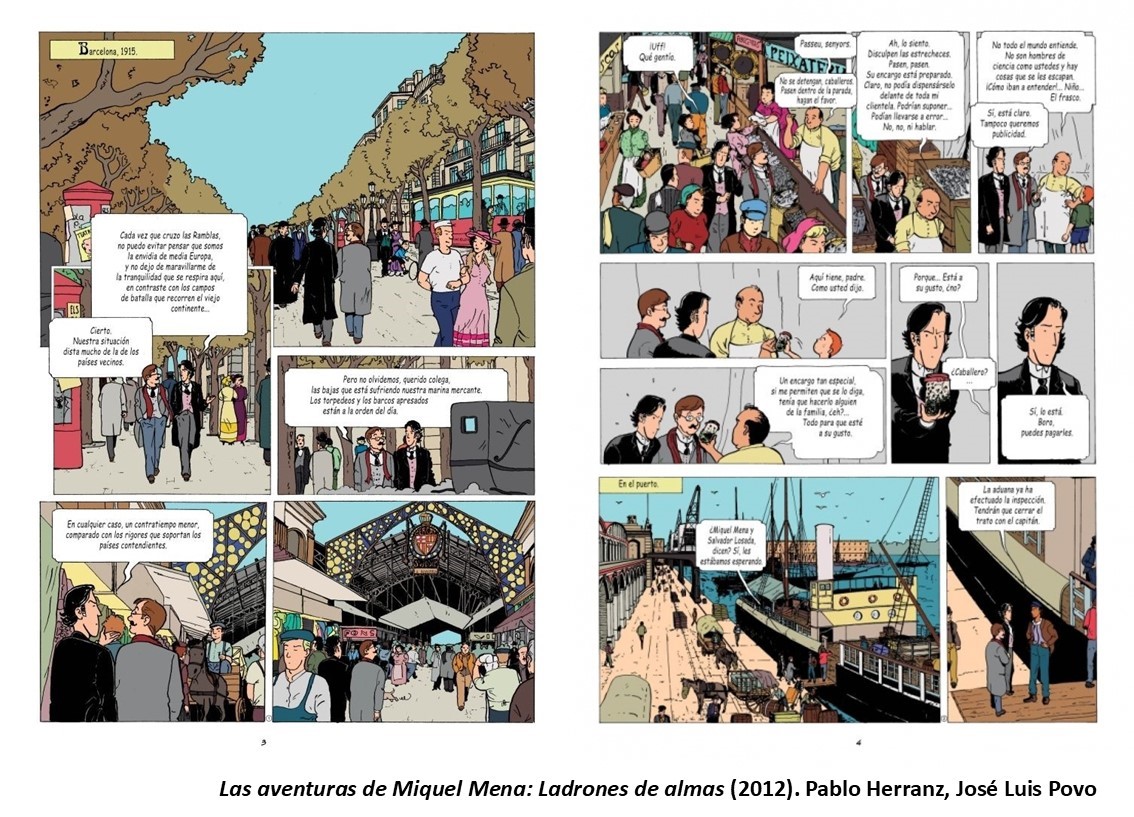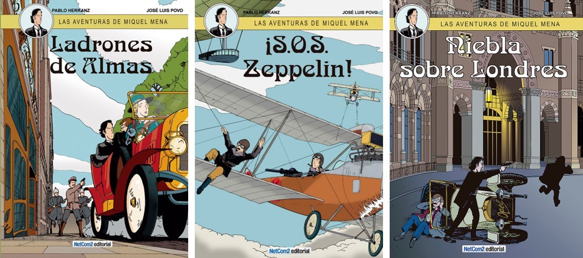 Aquesta nova col·lecció autòctona porta el simbòlic títol de Les aventures de Miquel Mena, i està protagonitzada pel barceloní Miquel Mena, biòleg especialitzat en botànica, juntament amb el seu inseparable ajudant Salvador Losada, alies Bor, químic de professió. El primer número de la col·lecció era Les aventures de Miquel Mena. Saltejadors d’ànimes (2012), que en la primera edició es va publicar en castellà, català i eusquera. Esdevé el 1915, i apareixerà per primera vegada aquesta intenció per part dels autors, especialment de Povo, que l’arquitectura tingui un protagonisme destacat a les vinyetes, i que es mantindria en els treballs posteriors. La història comença a Barcelona, quan els científics presenten un descobriment que revolucionarà la medicina, la notícia del qual desembocarà en robatoris i sabotatges sufragats per una lògia maçònica, esquitxats amb la presència d’espies alemanys i diverses personalitats reals de l’època, com la del policia espanyol Manuel Bravo Portillo (1876-1919), que, precisament, passarà a la història pels seus vincles amb l’espionatge alemany durant la guerra, o la del Baró de Köening, Friedrich Rudolf Stallmann (1871-1946), que va ser un espia que treballava alhora per a França i Alemanya. Aquesta època, coneguda com la del «pistolerisme», queda retratada a l’inici del còmic amb la imatge d’un atemptat reial que es va perpetrar al port.