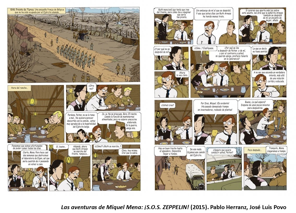 La complexitat de compaginar l’activitat professional com a arquitecte amb la de dibuixant va endarrerir el segon número de la col·lecció, que es va publicar tres anys després, amb el suggeridor títol de Les aventures de Miquel Mena. S.O.S. Zeppelin! (2015), que es desenvolupa a l’imperi austrohongarès, amb els emblemàtics edificis d’Otto Wagner (1841-1918) de Viena com a decorats majestuosos, i amb una forta presència de les avantguardes de principi de segle, com l’arquitectura futurista d’Antonio Sant’Elia (1888-1916), lloc idoni per situar la base dels dolents del còmic. Continua el conflicte de la Primera Guerra Mundial i les batalles se celebren al cel, on els zepelins tindran un protagonisme especial, que ens remet a una època determinada, en un moment que van ser concebuts com una arma molt perillosa, encara que no van sobreviure als avenços tecnològics de la següent dècada. Els protagonistes viatjaran des de Barcelona (amb imatges enyorades del port de principis de segle) i es veuran embolicats en noves conspiracions després de la visita a l’Òpera de Viena, després d’abandonar el front belga del conflicte, a petició de l’exèrcit francès.