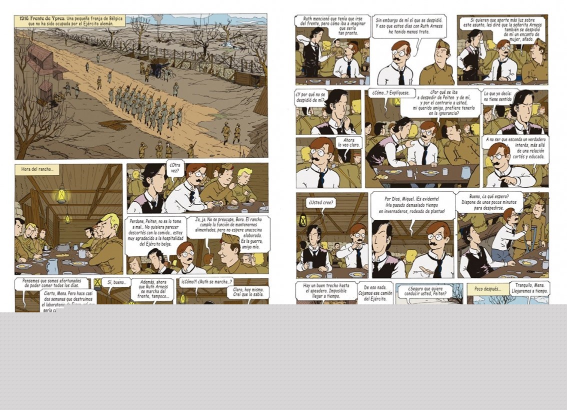 El Modernismo tendrá su máxima expresión en el cómic, con la presencia de edificios como el Hospital de la Santa Creu i Sant Pau, el Mercat de la Boqueria, la Casa Fuster o el emblemático edificio de la Aduana del Puerto de la ciudad condal, con submarinos alemanes acechando desde la costa, donde se gestarán algunas escenas con viñetas bajo el mar. Esa primera incursión en las aventuras del personaje catalán de nueva creación le llevará del Modernismo barcelonés a las trincheras de la Bélgica invadida por el ejército alemán, viajando a ciudades como Bruselas o Brujas, tratando de resolver las intrigas asociadas al robo sufrido, con una excelente documentación y una contextualización histórica rigurosa, característica de la colección, y con la intervención de un personaje femenino que les acompañará en sus aventuras esporádicamente, la intrépida periodista Ruth Arness, que volverá en el tercer número.