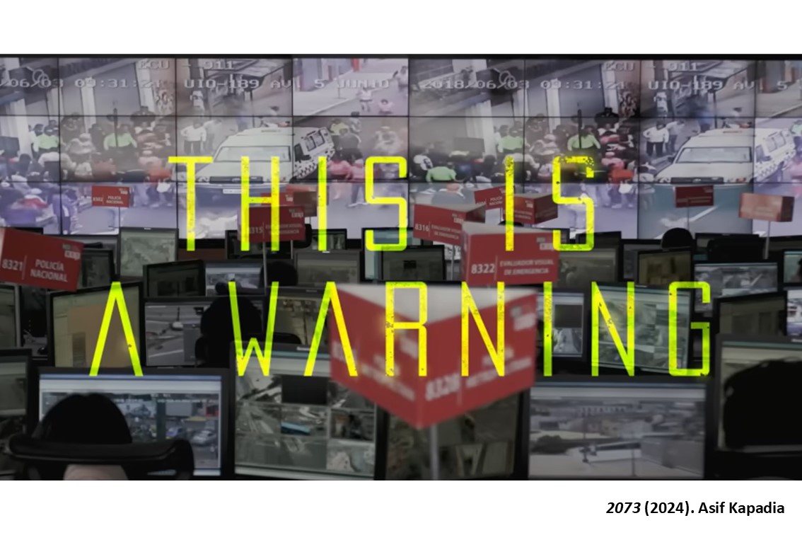 Pero 2073 es, en realidad, un documental. A través de una línea de tiempo que muestra el pasado, se recuperan diferentes momentos claves de las dos primeras décadas del siglo XXI, de noticias reales acontecidas en diferentes países del mundo, protagonizadas por autoridades que tendrían matrícula de honor en malismo, como Modi, Xi, Maduro, Duterte, Bolsonaro, Orban o Putin, o personajes tan influyentes como Mark Zuckerberg, Elon Musk, Peter Thiel, Rupert Murdoch, Jeff Bezos, Priti Patel, Nigel Farage o Steve Bannon. Aunque no todo es para temblar. Kapadia destaca el trabajo de la periodista filipina Maria Ressa, perseguida judicialmente en su país por investigar y publicar noticias sobre la controvertida guerra contra las drogas del expresidente filipino, así como por combatir las noticias falsas y la desinformación en el archipiélago asiático. Ressa fue galardonada con el Premio Nobel de la Paz en octubre de 2021, ofreciéndonos una chispa de esperanza entre tanta alerta de malismo.
