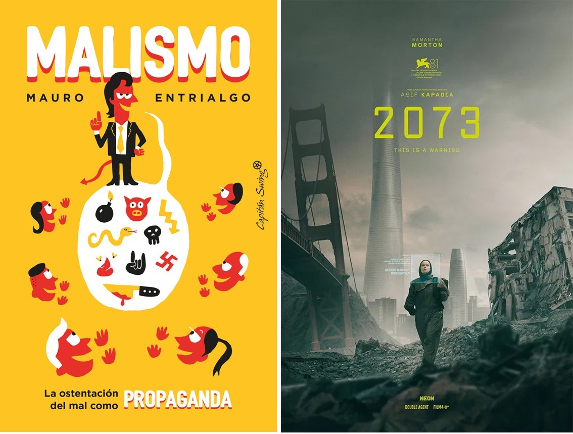 «La exhibición de una personalidad negativa provoca la recompensa de la credibilidad de la concurrencia» afirma y justifica con ejemplos el autor, Mauro Entrialgo, nacido en Vitoria en 1965 pero residente en la ciudad de Madrid desde hace décadas, donde debe de convivir con un alcalde que presume airadamente de que no hará nada para arreglar el problema de la vivienda de los jóvenes; o ver cómo la entonces vicealcaldesa, Begoña Villacís, se hacía fotos posando delante de la excavadoras que destrozaban las chabolas ubicadas de forma precaria en un terraplén de la M-30, el 20 de septiembre de 2022, entre otros malismos. En la edición 57ª del Sitges-Festival Internacional de Cinema Fantàstic de Catalunya, celebrada del 3 al 13 de octubre, se ha podido ver, inmediatamente después de su estreno mundial en el Festival Internacional de Cine de Venecia, el documental 2073 (2024), dirigido por Asif Kapadia, que coescribe el guion junto a Tony Grisoni. Kapadia, presente en la sala durante la proyección, explicó a los asistentes la intención última de su innovadora propuesta, al especular sobre cómo sería el año 2073, cuando Trump cumpliese ya treinta años en el poder. Aunque, para sorpresa de los espectadores, se refería a Ivanka Trump, que, por cierto, en ese instante tendría 92 años. Kapadia muestra un futuro devastador, con unas terribles consecuencias provocadas por el cambio climático (superincendios, inundaciones, deforestación), una vigilancia perenne de la ciudadanía, un autoritarismo antidemocrático, un control férreo de los movimientos migratorios y una concatenación de epidemias mortales. Contemplamos imágenes de ficción de un futuro con ciudades bajo la atenta mirada de miles de drones que observan las ruinas en que se han convertido, empleando inteligencia artificial para identificar a todos los ciudadanos.
