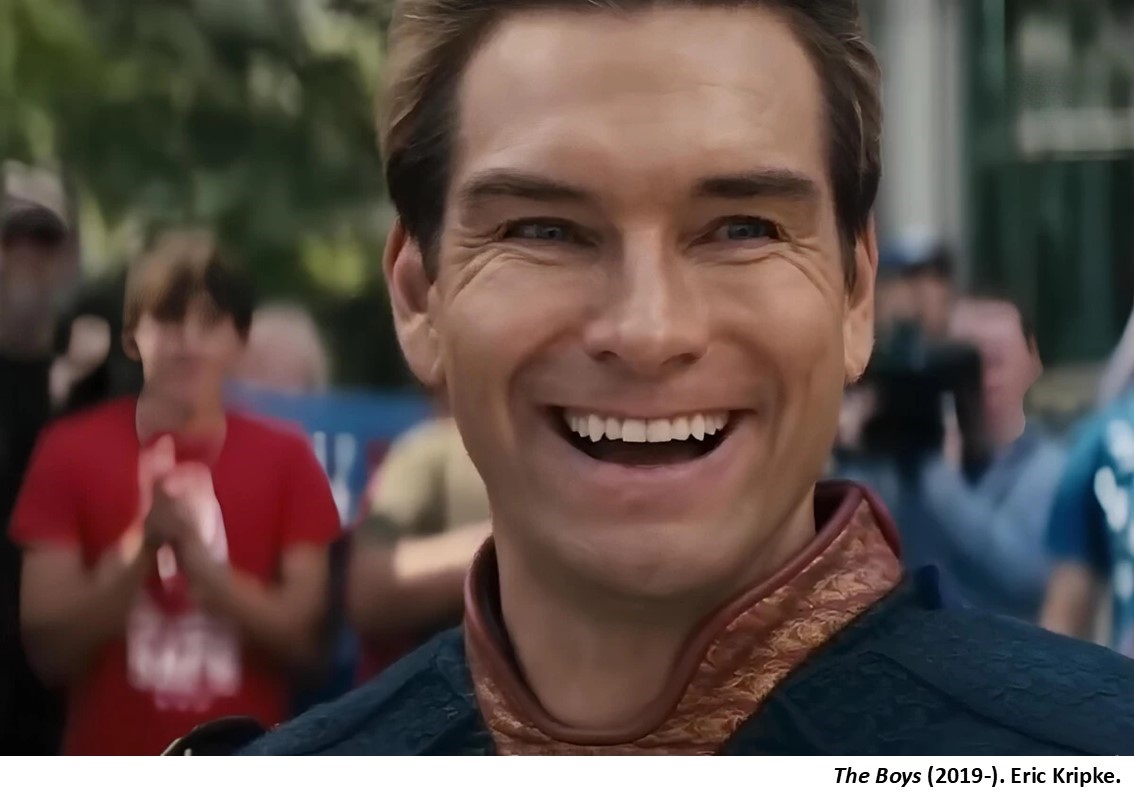 En la serie de televisión The Boys (2019-), concebida por Eric Kripke, basada en el cómic homónimo creado por Garth Ennis en el guion y por Darick Robertson en el dibujo, publicado entre 2006 y 2012 (editado en castellano por Norma Editorial), hay un buen ejemplo de estos comportamientos. La serie está protagonizada por un grupo de élite de siete superhéroes, cuya imagen pública está monetizada por una gran corporación, cuya dirección empresarial está siempre muy ocupada intentando ocultar la personalidad de dichos ídolos de la sociedad: en realidad son personas narcisistas, arrogantes, engreídos, egoístas, machistas y, sobre todo, corruptos. El líder del grupo, el Patriota, con los poderes más peligrosos de todos ellos, similares a los de Superman, actúa habitualmente de forma sádica con su entorno más próximo, ocasionando terribles accidentes mortales por su poca consideración hacia las personas a las que en teoría debería rescatar. Además, acabaremos sabiendo que es un violador, un asesino y un déspota. Todo ello en privado. Hasta que en el episodio 8, en el final de la tercera temporada, destroza la cabeza de uno de los manifestantes justo delante del edificio de la empresa y de las cámaras de televisión, utilizando los rayos que lanza desde sus ojos. El superhéroe queda pálido por un instante, como pensando que se ha equivocado terriblemente por no aguantarse las ganas de matarlo, pero su semblante cambiará a una siniestra sonrisa cuando el resto de los manifestantes lo vitorean, como forofos descerebrados. A partir de ese instante, ya puede mostrarse tal y como es, sabiendo que cuenta con la aceptación de la ciudadanía.