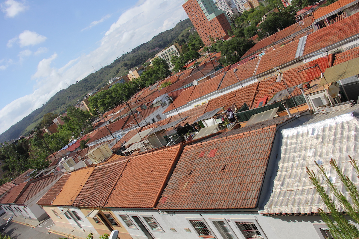 El templo es pequeño y en mi imaginación es un una imitación en miniatura de alguno mexicano en una de las zonas más tranquilas de esta barriada silenciosa y libre, un adjetivo complicado de introducir en cualquier texto, más aún en este dedicado a un lugar controlado al ser sus habitantes apestados durante decenios, tanto que en los periódicos su nombre no aparece impreso hasta 1988 para, al fin, superar el estigma de ser las casas baratas de Horta.