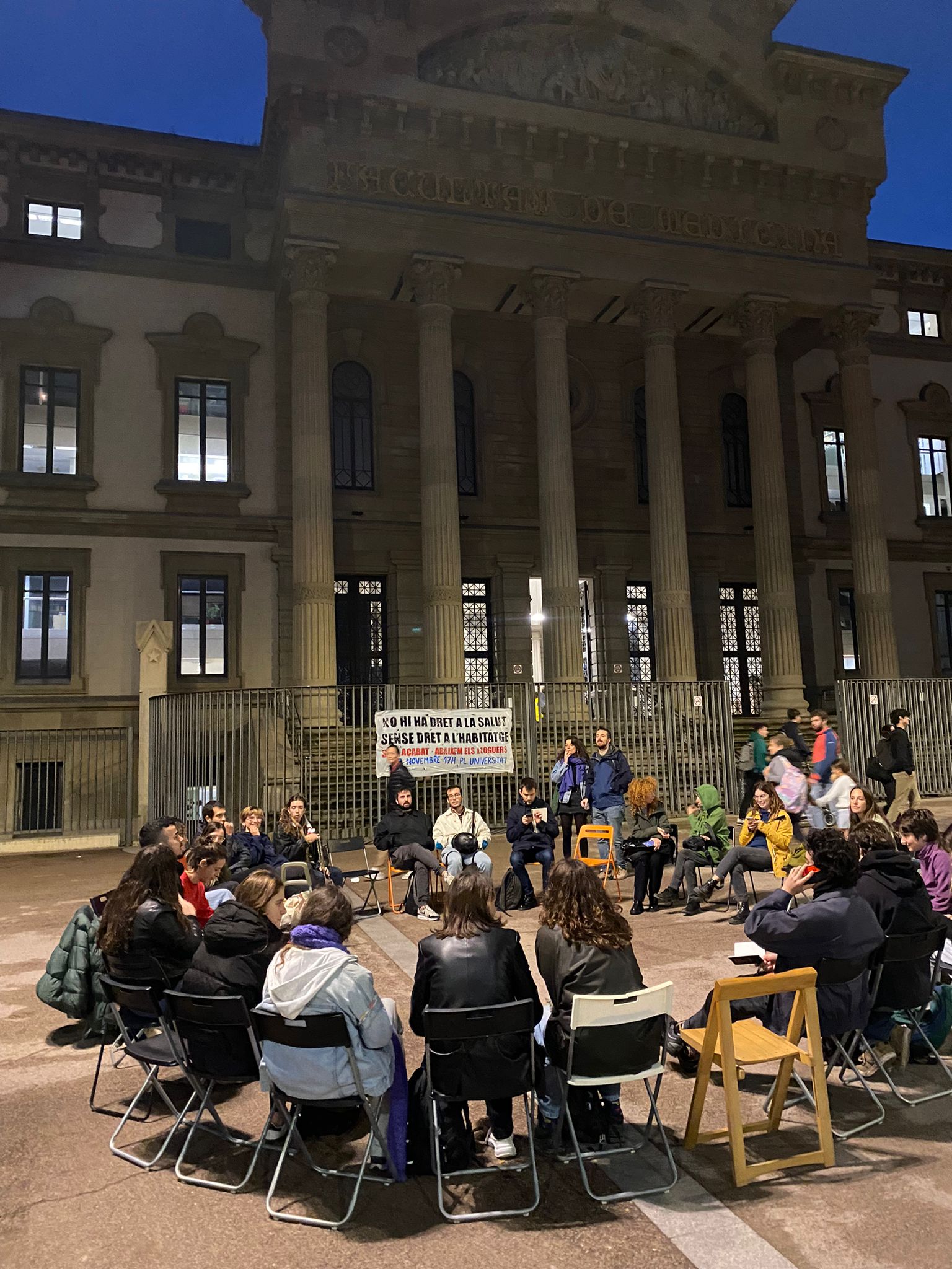 Assemblea davant de la Facultat de Medicina de l’Hospital Clínic de Barcelona. | Cedida La Capçalera Barcelona