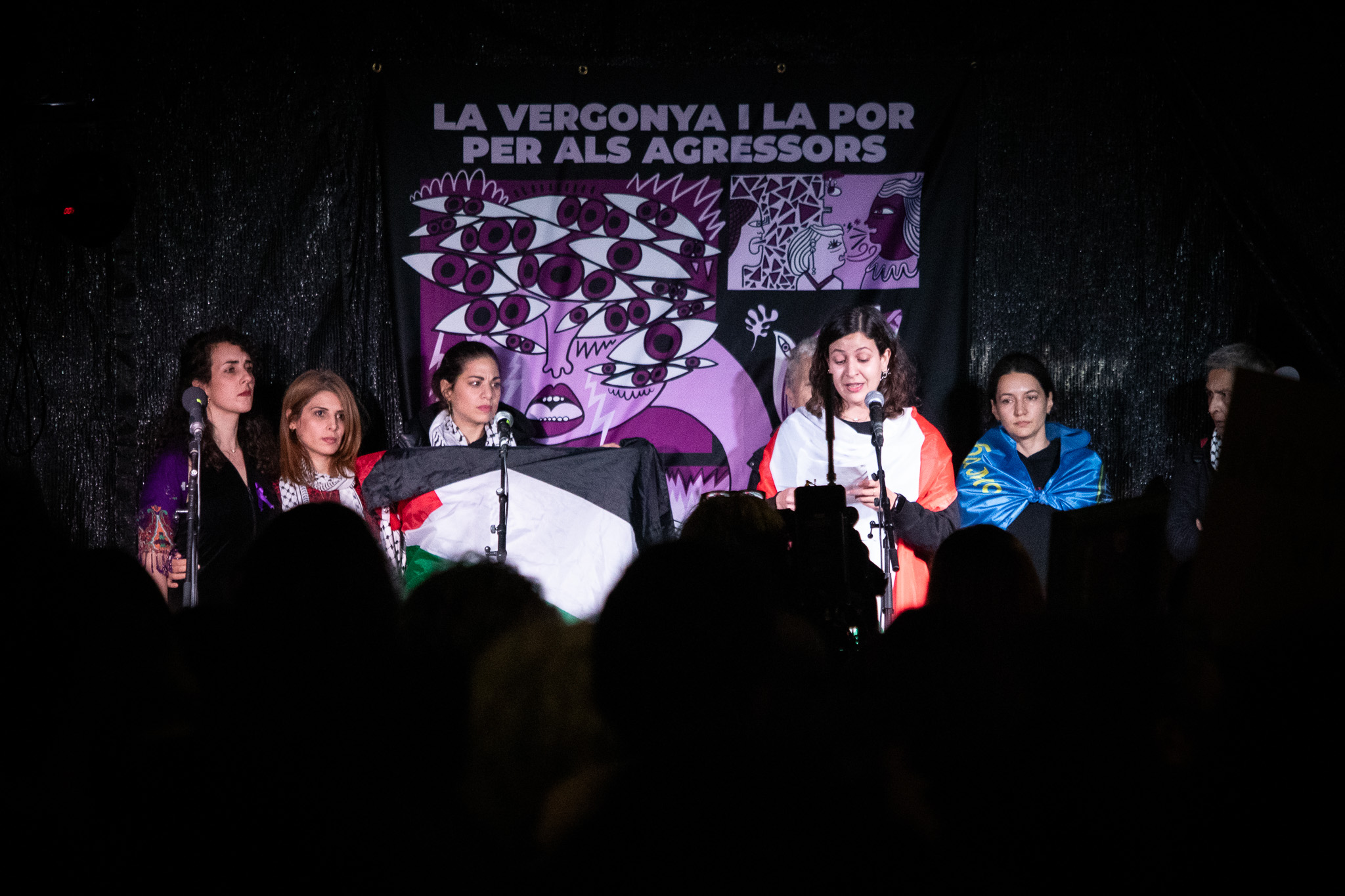 El manifiesto fue leído por ocho mujeres: la comunicadora Gisela Cano; la educadora Carolina Andreu; la actriz Mont Plans; Valentina, de Sindillar; Esther Viñas, de la Federación de Personas Sordas de Cataluña; Fanny, de Regularización Ya; Paula Santos, de Mujeres Migrantes Diversas; y la activista trans Patricia Caballero.