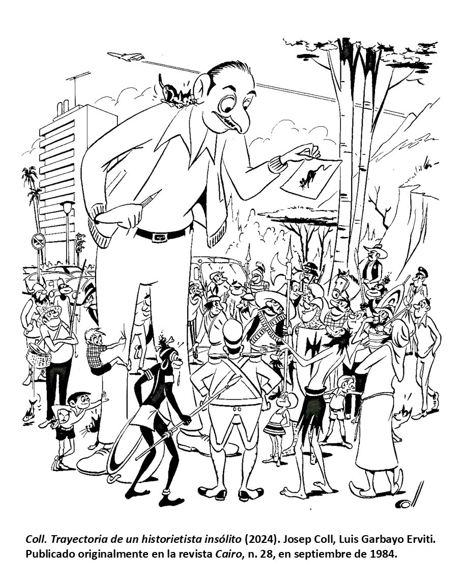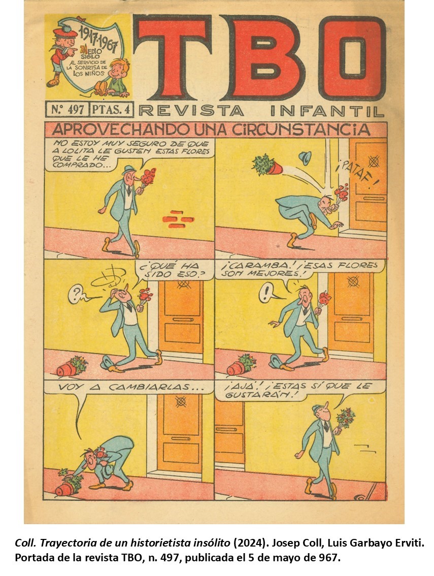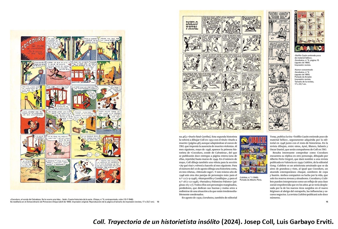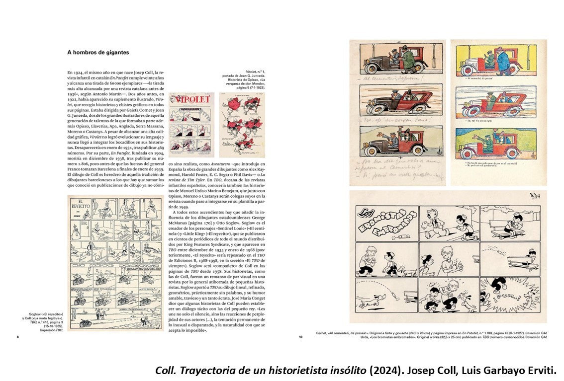 Josep Coll es recordado, especialmente, por su obra publicada en la revista TBO (1917-1983), reconocido por su trazo claro y su humor blanco, con un estilo que representaba una pátina de modernidad para la publicación, con el paso de los años. Garbayo realiza un completo análisis de las lecturas y autores que influyeron en el joven Coll en su infancia y juventud, en una época de grandes penurias y esfuerzos. En la biografía del autor impresiona que se incorporara a trabajar en una cantera de Montjuic, propiedad de la empresa de su padre, a la edad de doce años. Cursó posteriormente estudios en la Escuela de Trabajo en Mecánica, en la Escuela de Arquitectura en la especialidad de Aparejador, y en la Escuela de Artes y Oficios Artísticos en La Llotja, en Barcelona, justo antes de incorporarse al servicio militar, donde estuvo entre 1945 y 1947, en Puigcerdà.