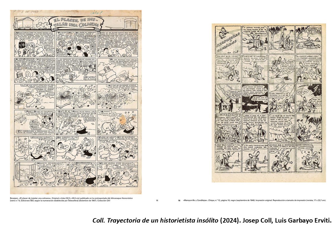 A lo largo del año 2024, hemos podido visitar las exposiciones organizadas en homenaje al autor en el Museu del Còmic i la Il·lustració de Sant Cugat del Vallès, una singular instalación e iniciativa promovida por José Luis Villanueva y Paco Baena, y en la Biblioteca Esquerra de l’Eixample–Agustí Centelles, en la sala Teresa Pàmies, con la exposición Coll cumple 100 años. Exposición sin palabras, comisariada por Luis Garbayo Erviti. De este experto en la obra del autor, Norma Editorial ha publicado el libro de arte Coll. Trayectoria de un historietista insólito (2024), con una extensa selección de originales y publicaciones de Josep Coll, con una cuidada edición y textos de análisis de Garbayo.