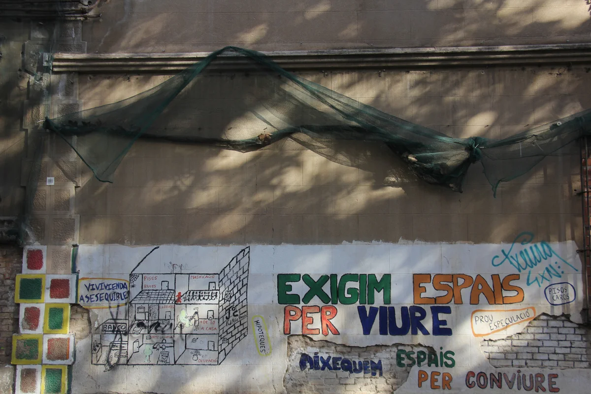 Mural sobre la vivienda, sin fecha, en el muro de la vieja fábrica Sanchis. | Jordi Corominas