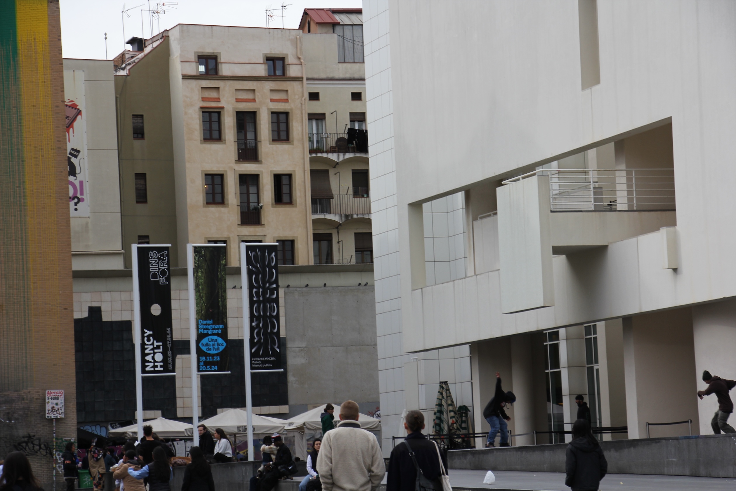 El texto se centraba, para ser concretos y afinar el tiro, en cómo las formas ondulantes de algunos elementos del parque son maltratadas por skaters y patinadores. Barcelona optó hace unos años por limitar el área de sus performances a la plaça del MACBA, prohibiéndose, si eso es viable, en otros sitios, imagino la plaça Universitat, donde los del monopatín rentabilizaban unos bancos que nunca fueron idóneos para nada, expuestos al sol y sin protección.
