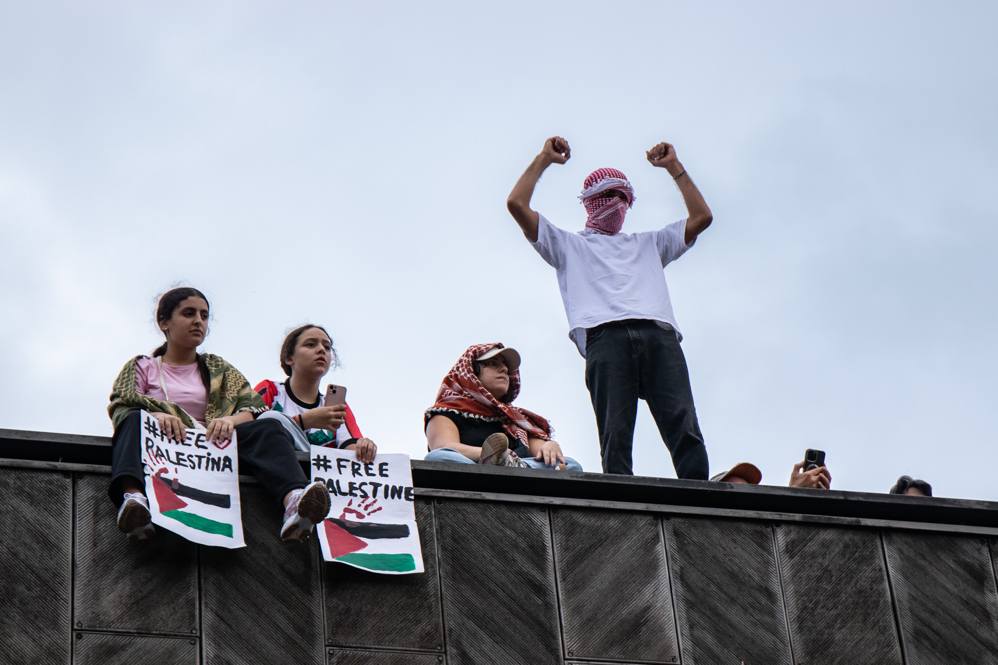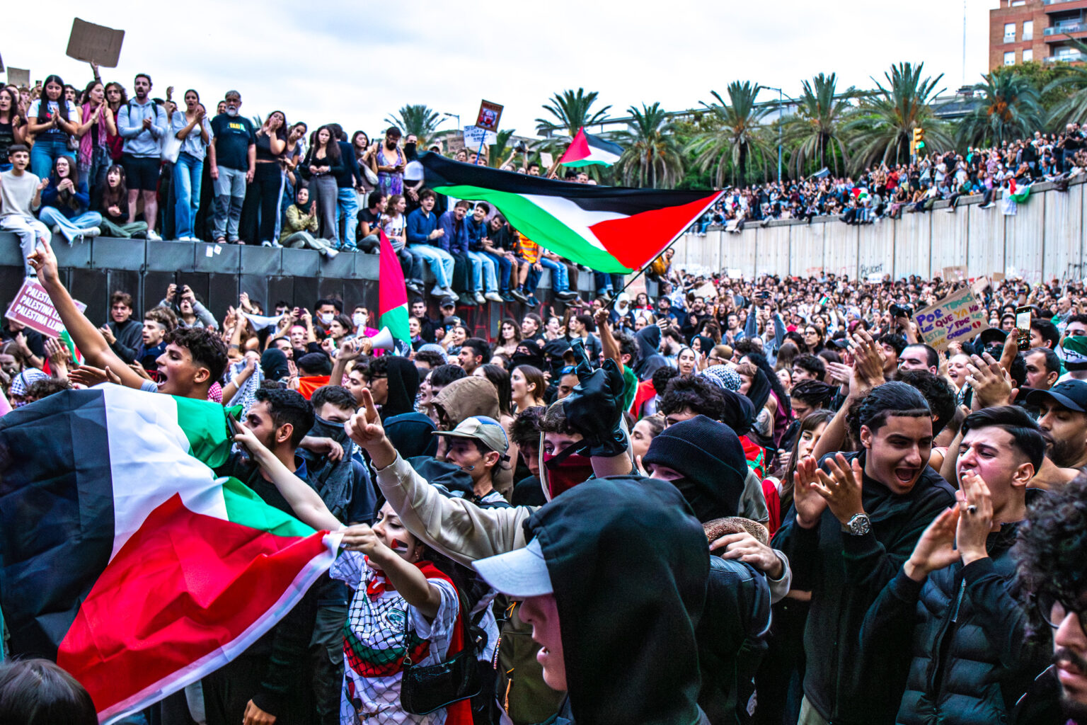 El Sindicat de Llogateres havia convocat la nit de dijous una assemblea per decidir si es feia una acampada a la plaça de les Drassanes. Una pancarta amb el lema ‘Palestina Vencerà, des del riu fins al mar obria la manifestació, en la que se sentien crits com “Aturem el genocidi”, “Destruïm l’estat sionista d’Israel”, “Free Palestine”, “Boicot a Israel” i “Fora les forces d’ocupació”.