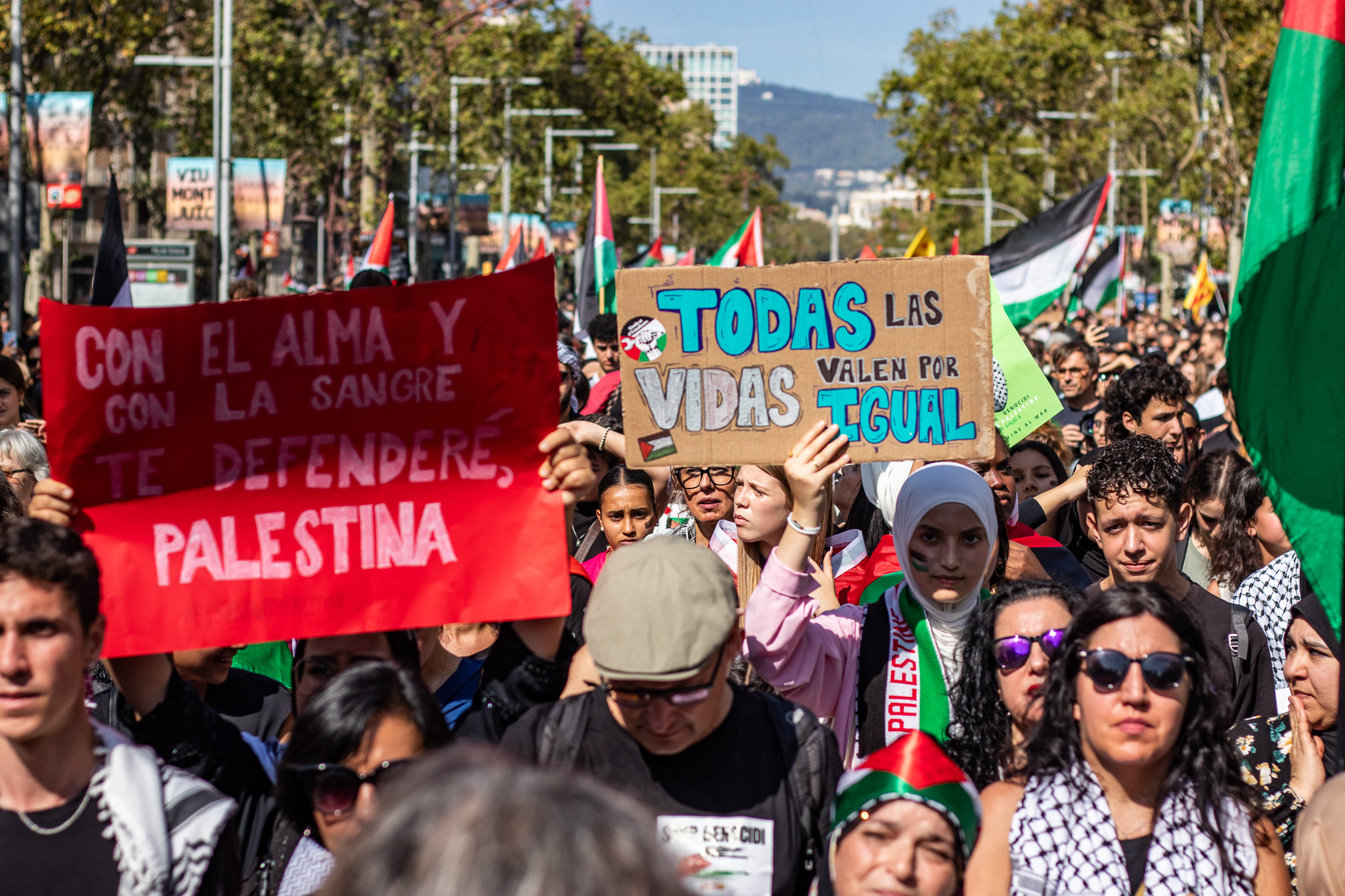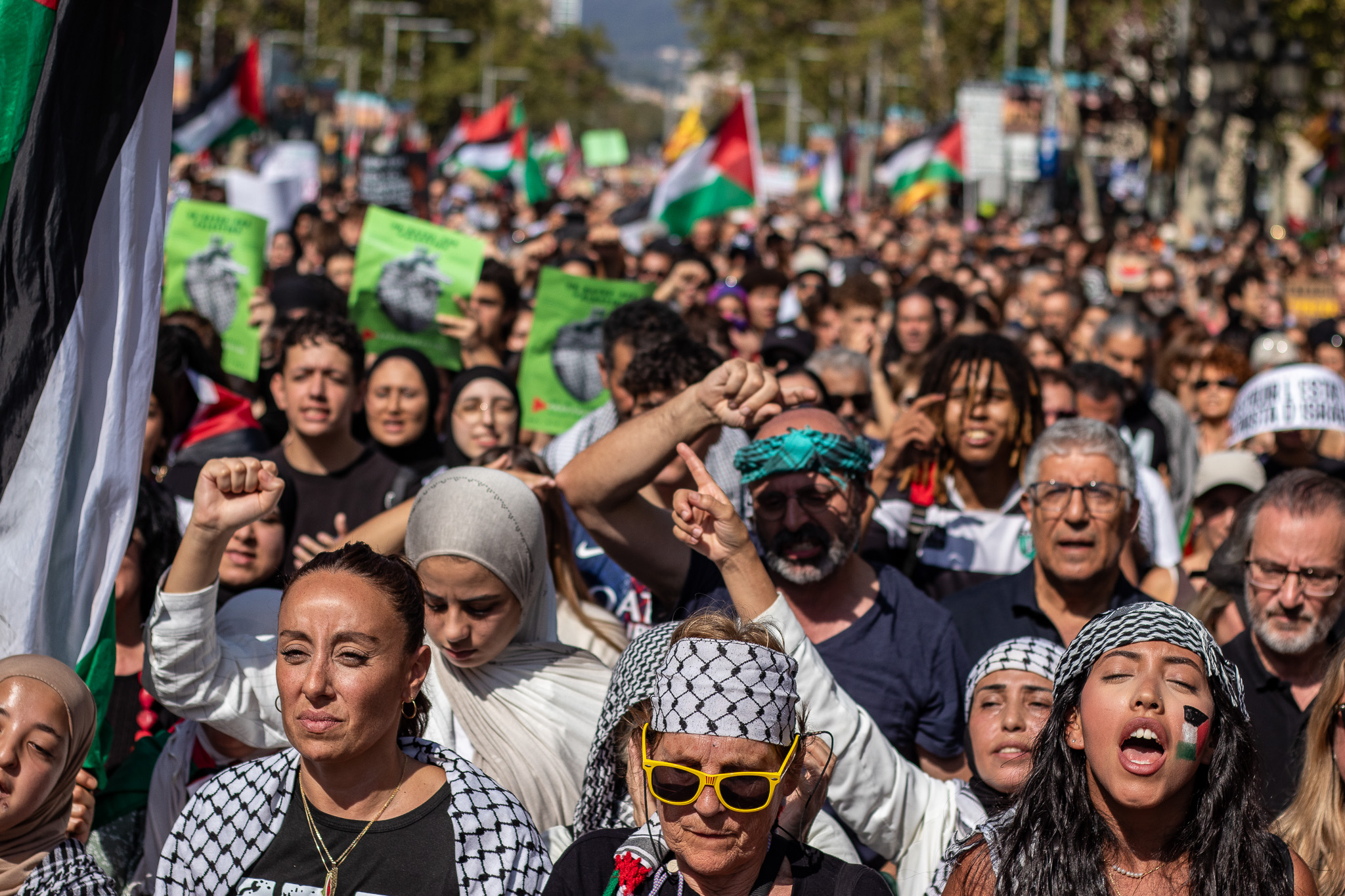 La ciudad de Barcelona ha vivido una manifestación contra el genocidio en Gaza que recordó a las protestas del “no a la guerra”. Era el año 2003 y Barcelona se convirtió en un referente mundial del rechazo a la invasión occidental de Irak. Cuando están a punto de cumplirse dos años de los ataques de Hamás, el 7 de octubre de 2023, y del inicio de la ofensiva de Israel, más de 70.000 personas, según la Guardia Urbana (300.000 según los organizadores), clamaron por una Palestina libre y con vida.