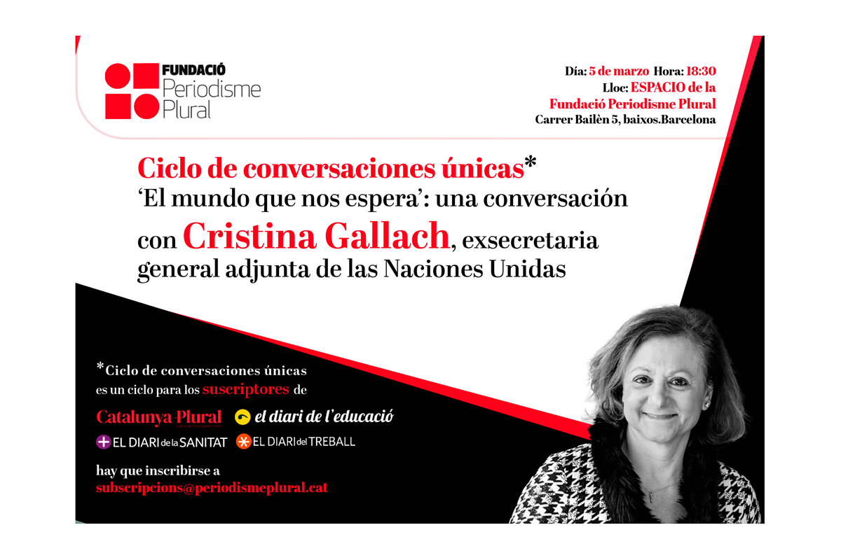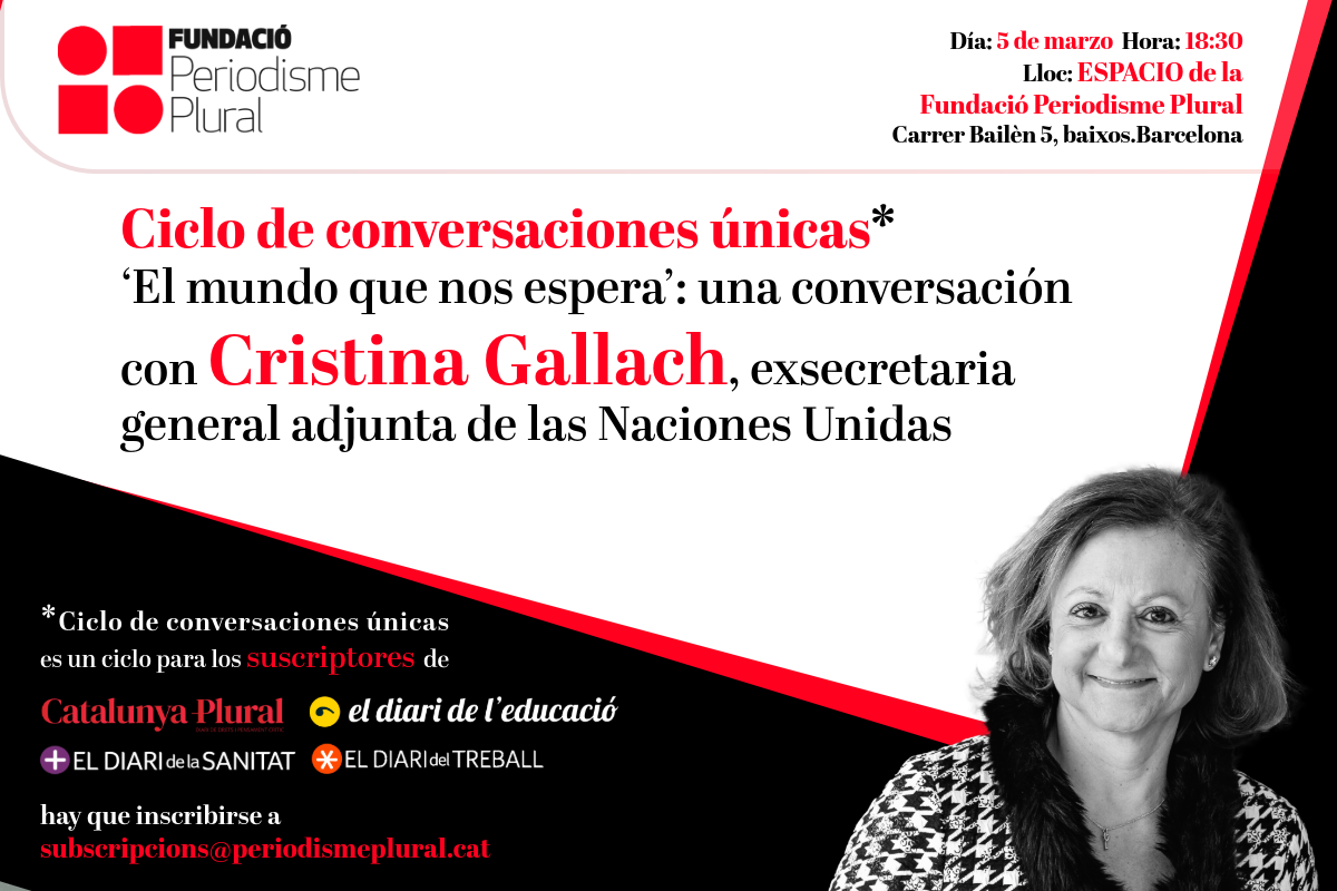 Cristina Gallach ha vivido en primera línea la evolución del mundo a lo largo de medio siglo, primero como periodista y después en el ejercicio de altas responsabilidades en el ámbito internacional. Su mirada es una de las más clarividentes a la hora de analizar los riesgos que afrontan las democracias y los derechos humanos ante las políticas reaccionarias que impulsan Donald Trump y las extremas derechas europeas. Gallach fue secretaria general adjunta de las Naciones Unidas, lo que le aporta una visión global de “el mundo que nos espera”.