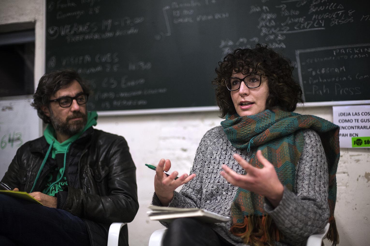 Enguany la PAH Barcelona celebra nou anys de la seva creació. Era el 22 de febrer de 2009. Si bé ha anat variant amb tot aquest temps, hi ha algunes màximes que segueixen tan vigents com el primer dia: aturar desnonaments i fer assessorament col·lectiu per tal d’apoderar a cadascú. Una de les persones que ha estat des dels inicis de la PAH és la Lucía Delgado. Enginyera química de formació, ha participat en diferents comissions i campanyes des del desallotjament de l’Espai Social Magdalenes (Ciutat Vella), amb la que ara és alcaldessa de Barcelona. Al seu costat seu en Santi Mas de Xaxàs. “Vens un dia i t’enganxes”, recorda aquest llicenciat en ADE. Del seu primer dia ja fa cinc anys, quan el va animar a participar un cosí seu. Ara forma part de les comissions d’Internacional, de Benvinguda, Relacions Institucionals i un llarg etcètera.