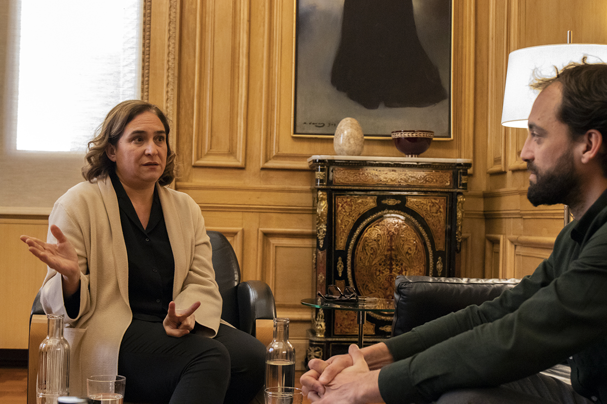 Hablamos en su despacho a lo largo de una hora sobre algunos de los principales retos que afronta la Barcelona, como son la educación, la vivienda, el medio ambiente o la salud mental, pero también de los posibles pactos electorales, pues parece evidente ningún candidato ni candidata tendrá la mayoría suficiente para gobernar en solitario. En relación a los posibles pactos electorales la alcaldesa afirma —en alusión al PSC y ERC— que “una ciudad de izquierdas necesita pactos de izquierdas”. Preguntada sobre el modelo de la ciudad que se ha ido impulsando, Colau considera que la “transformación de Barcelona ya está en marcha”, pero que es necesario “consolidar” estos cambios. Tampoco duda en apoyar el proyecto político “Sumar” liderado por la actual ministra de Trabajo Yolanda Díaz, quien considera que “combina mejor que nadie la capacidad de diálogo y de consenso con los resultados concretos de una política útil”.
